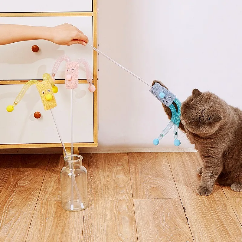 Juguete para gatos de dibujos animados, palo de rompecabezas, palos de bolas de lana, juguete para gatos con campana, juguetes para gatos, red elástica interactiva, juguetes para gatitos, productos para mascotas