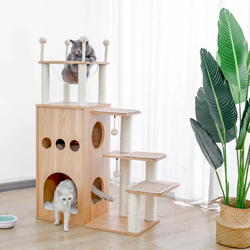 · ESTILO DE VIDA LIMPIO Y ACOGEDOR: Elaborado con una sensación contemporánea en vetas de madera natural, limpio pero hermoso, que refleja el encanto único del hogar moderno para mascotas, este árbol para gatos será el que desea lucir.Combínelo con la alfombrilla extraíble y lavable en cada plataforma no solo brinde la mejor protección para su gatito, sino también para facilitar la limpieza.El cojín ultrasuave se coloca cuidadosamente en cada condominio ofreciendo un ambiente más cálido y acogedor para jugar y dormir.