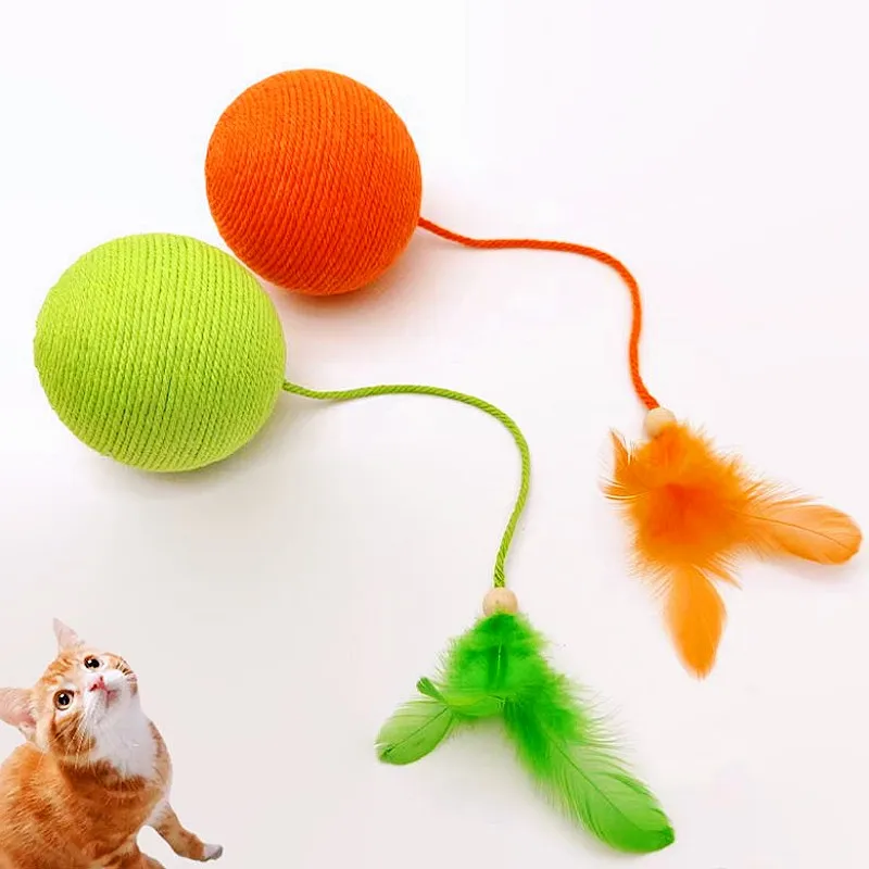 Juguete para gatos, juguetes interactivos de plumas para gatos, pelota de cuerda de algodón grande, juguetes para gatos, palos, juguete para gatos con campana, molienda de dientes, productos para mascotas
