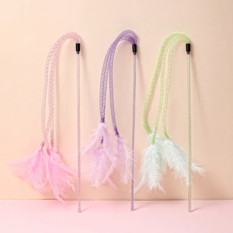 Juguete para gatos, juguetes de plumas para gatos, palo de juego, juguetes para gatos resistentes a mordeduras, juguete interactivo divertido para gatos con campana, productos para mascotas