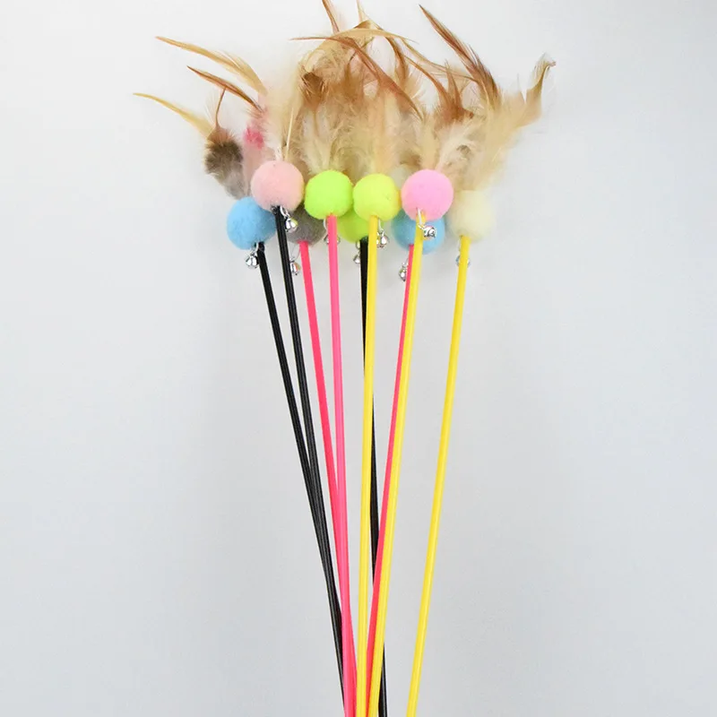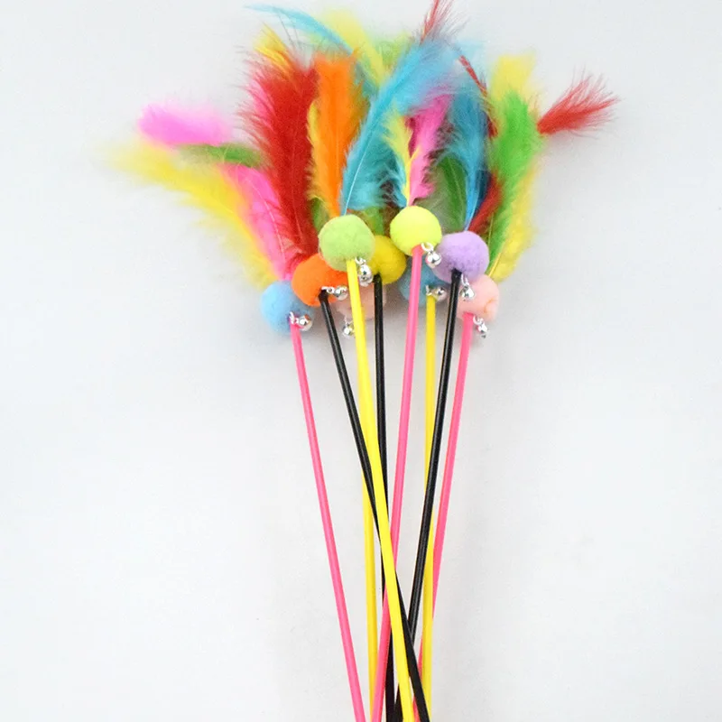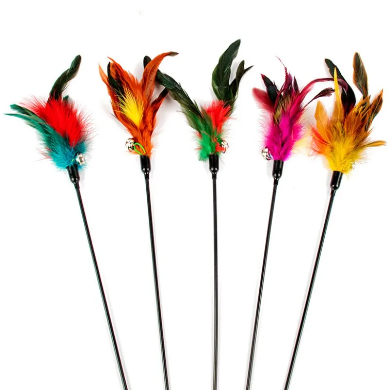 Juguete para gatos, juguetes de plumas para gatos, palo de mango largo, juguetes para gatos con campana, palos de plumas, juguete interactivo para gatos, Teaser para mascotas, suministros para mascotas
