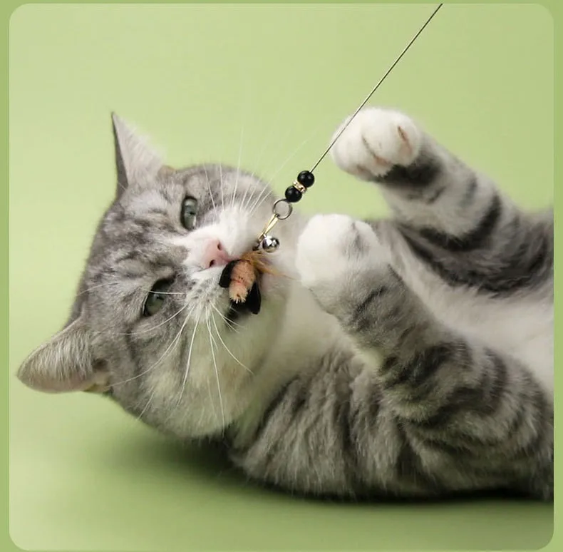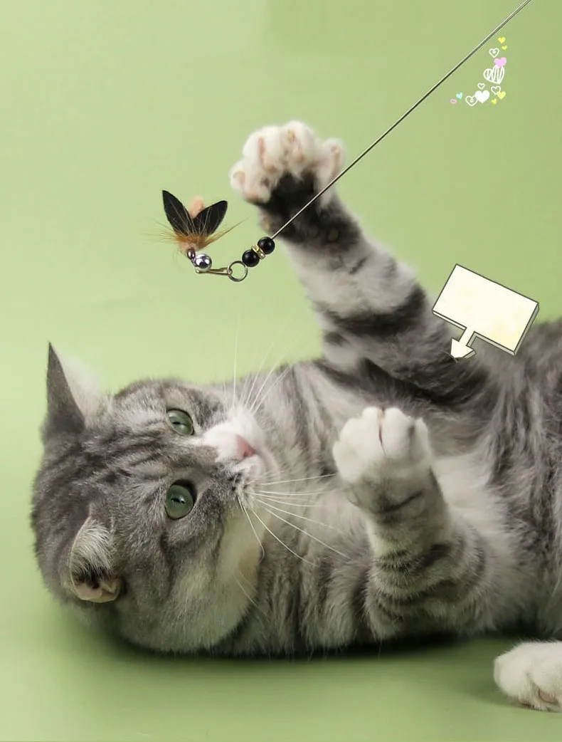 Juguete para gatos, palo de rompecabezas de mariposa para gatos, juguete interactivo de plumas para gatos con campana, alambre de acero, palo para gatitos, juguetes de plumas para gatos