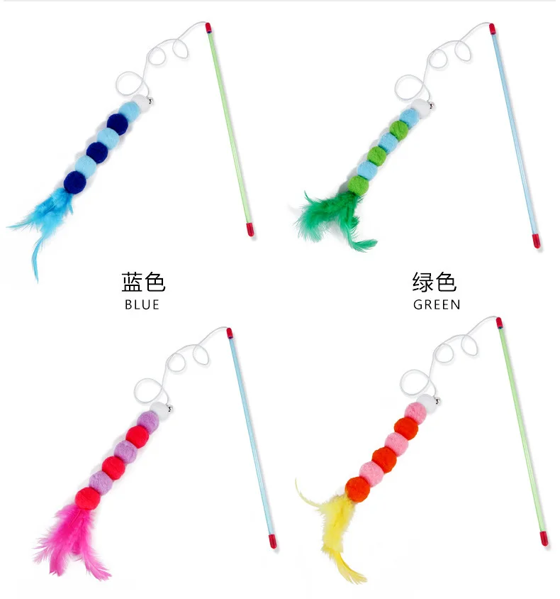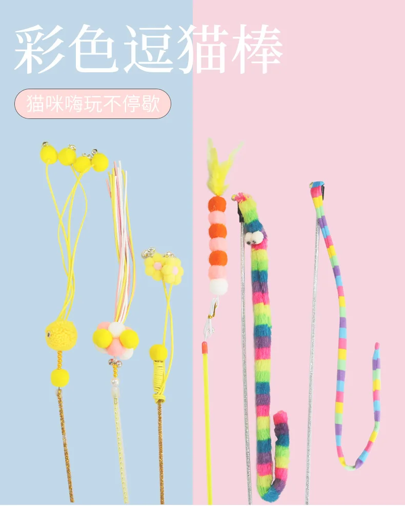 Juguete para gatos, palo de rompecabezas de plumas para gatos, juguete interactivo para gatos, oruga divertida, varilla colorida, suministros para gatos, accesorios para mascotas