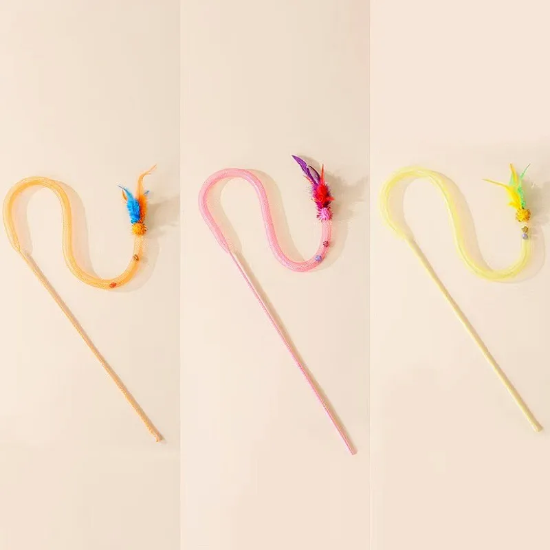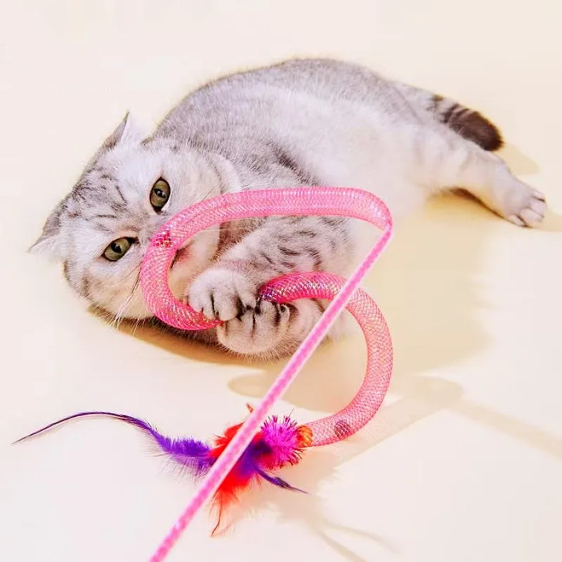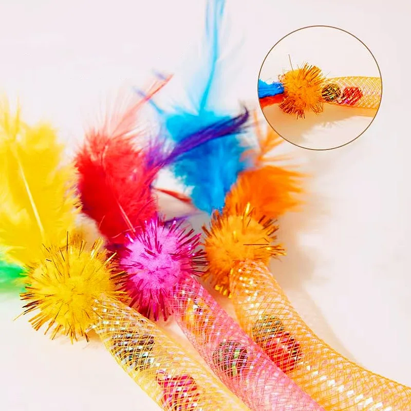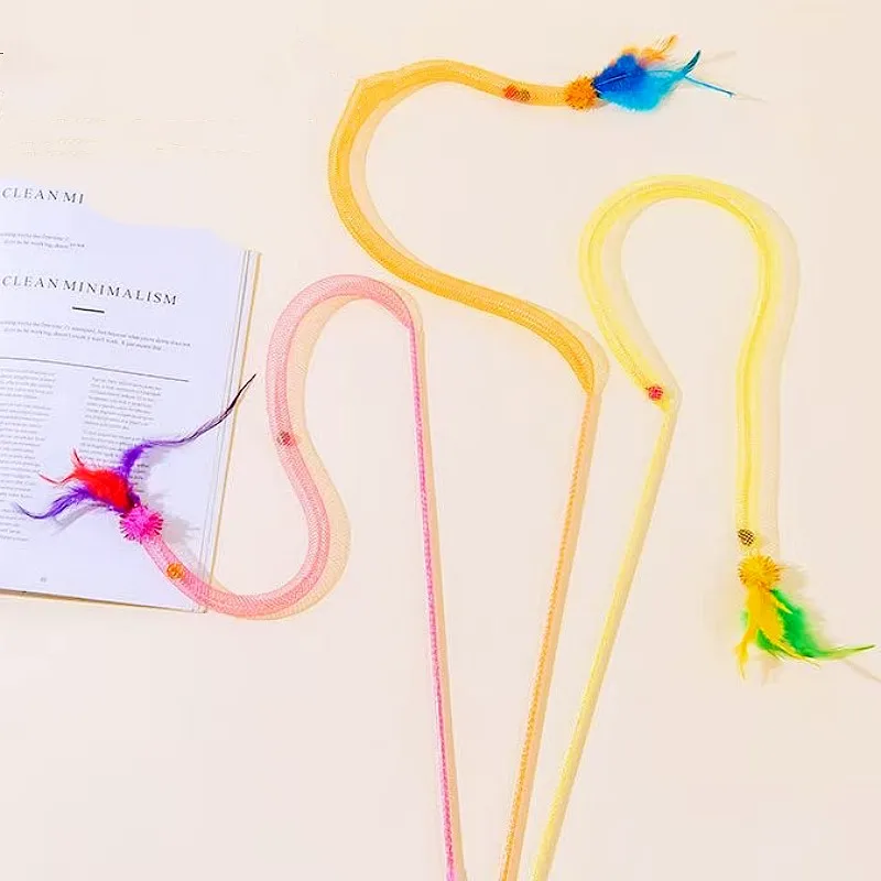 Juguete para gatos, palo de rompecabezas de plumas para gatos, juguetes de malla elástica para gatos, pelota de lana interactiva, juguetes para gatos, palo de burlas con campana, productos para mascotas
