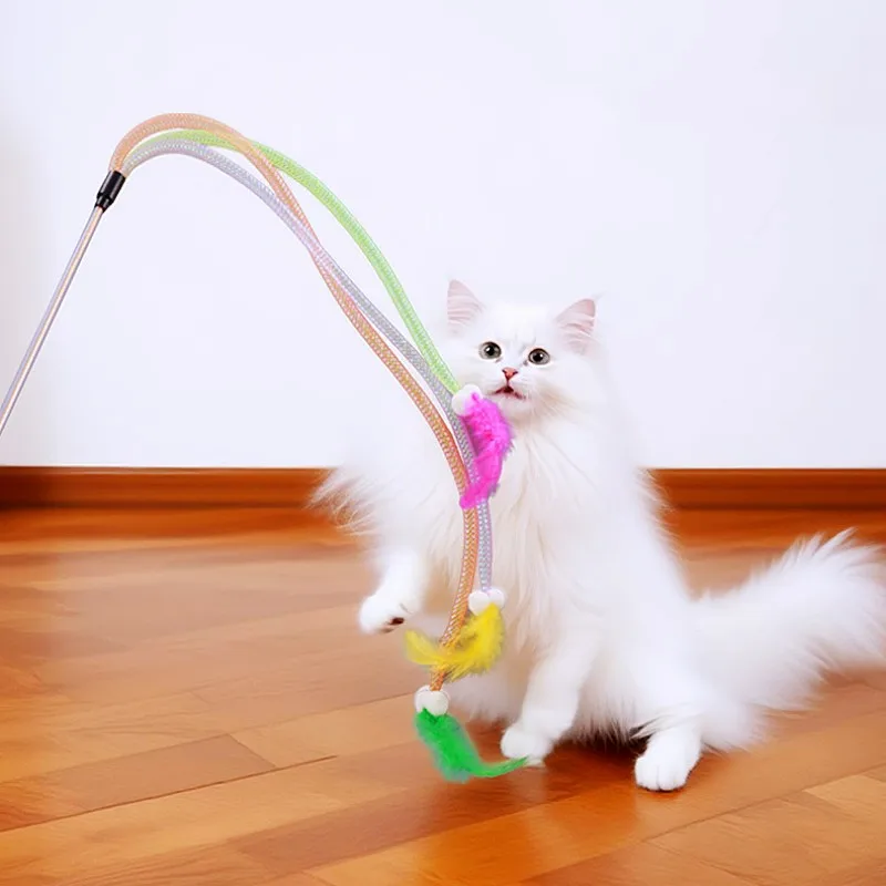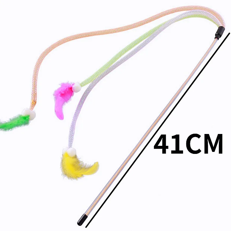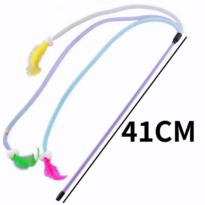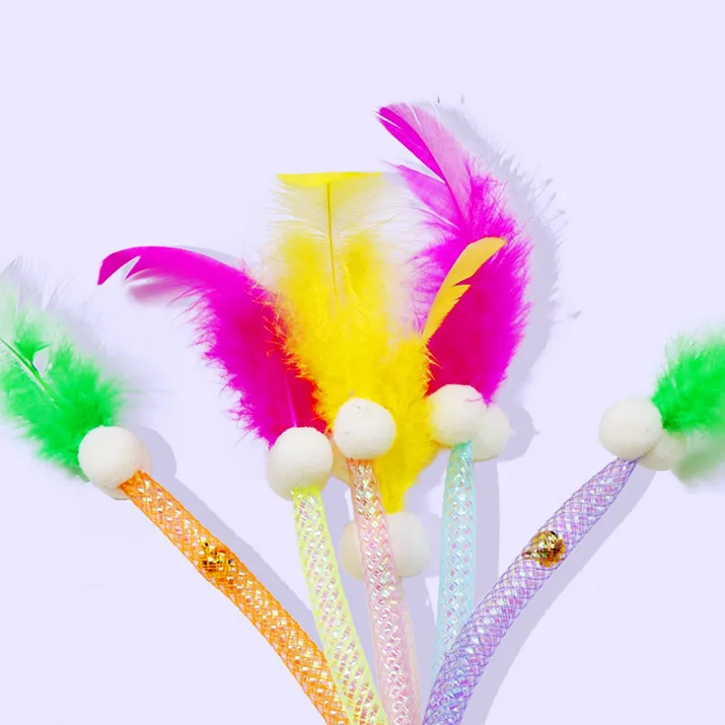 Juguete para gatos, palos de plumas para gatos, juguetes de malla elástica para gatos, juguete interactivo divertido, palillo para gatos, Teaser con campana, juguetes de bolas de lana, productos para mascotas