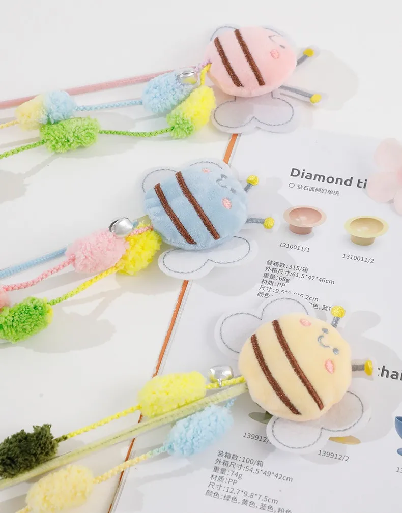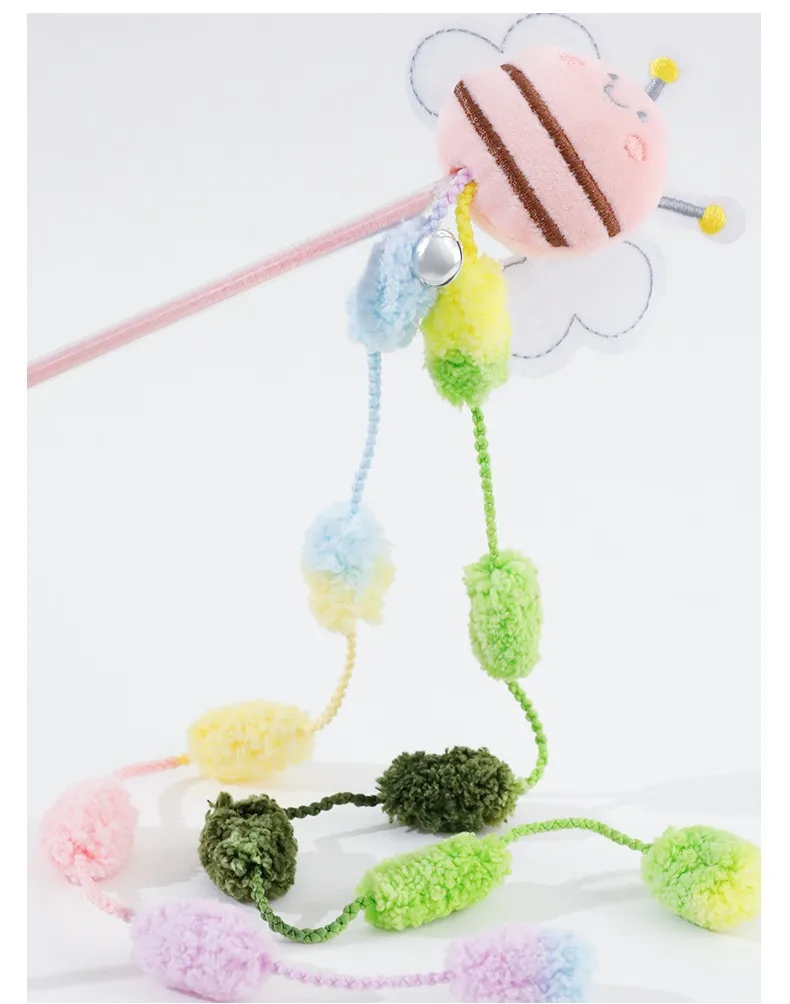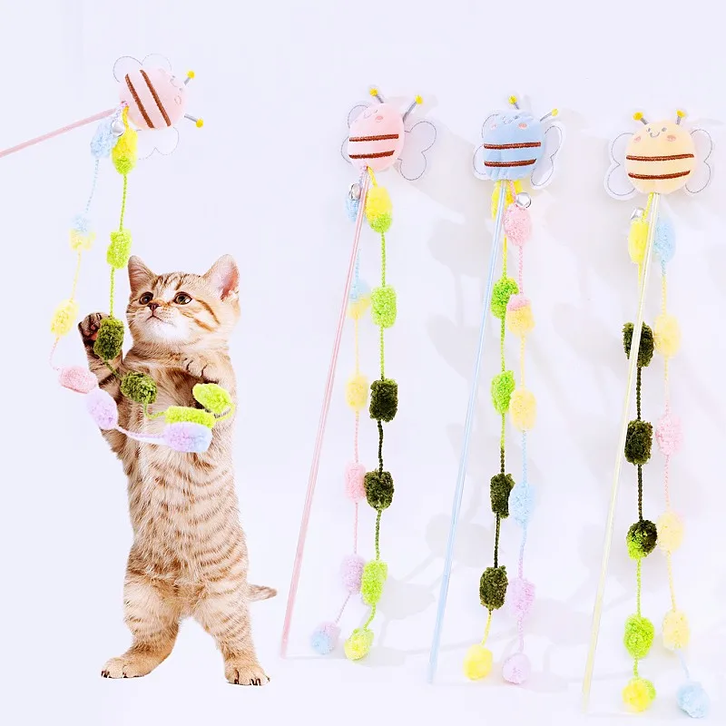 Juguete para gatos, pelota de peluche con borlas, palo de Teaser para gatos, juguetes interactivos para gatos con mango largo, pelota de lana para entrenamiento de gatitos, juguete para gatos con borla con campana