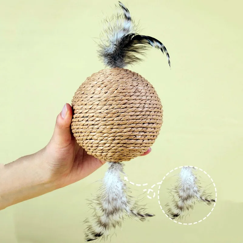 Juguete para gatos, pelota de plumas, juguetes interactivos para gatos resistentes a los arañazos, palos para gatos, bolas de Sisal Self-hi, juguetes para gatos, productos para mascotas