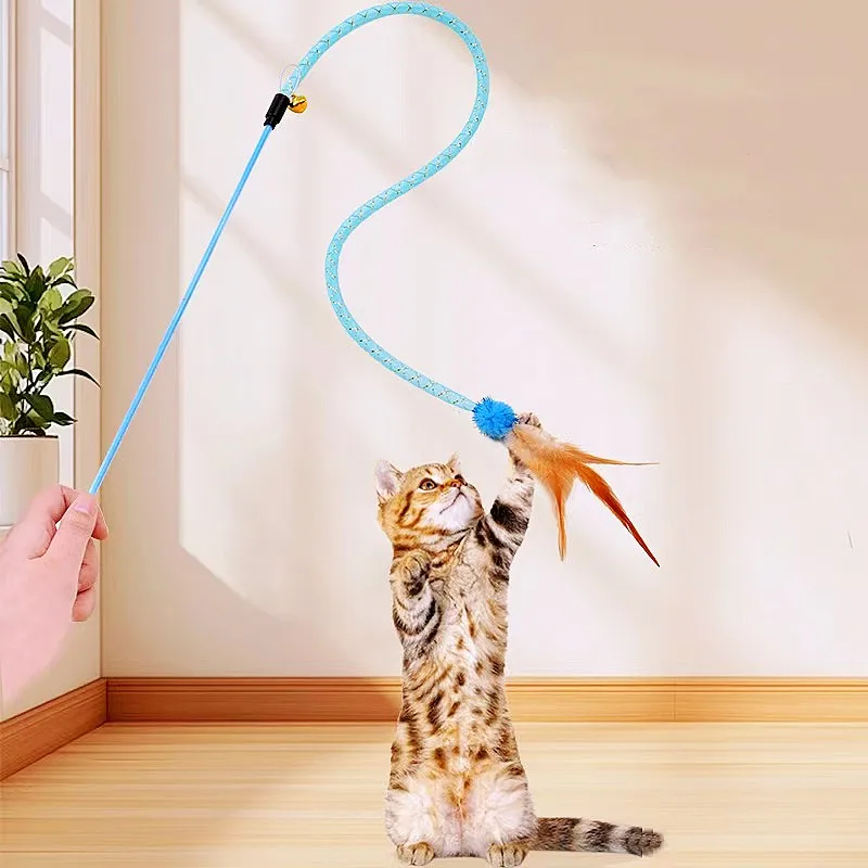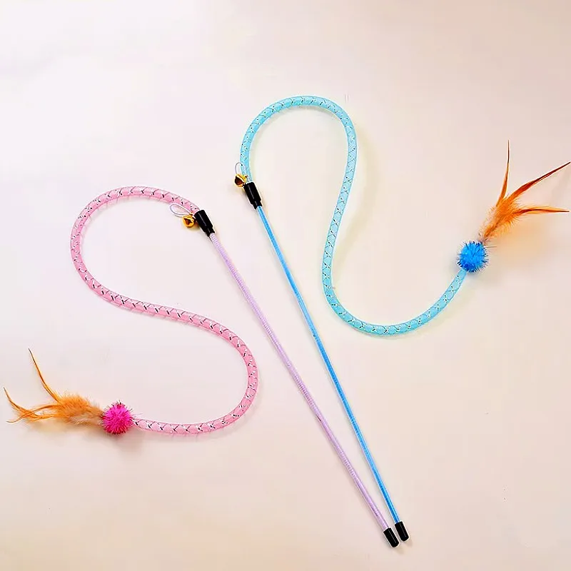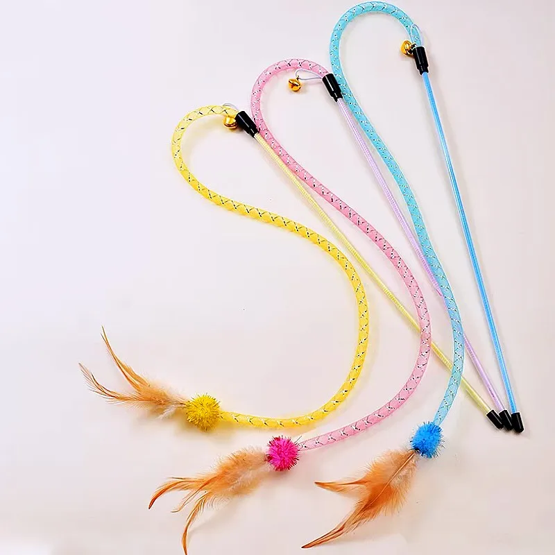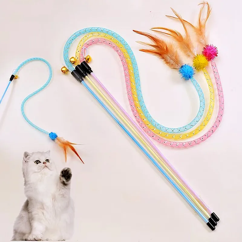 Juguete para gatos con plumas, palo de rompecabezas para gatos, juguete interactivo elástico para gatos, bola de lana, juguetes para mascotas, palos de plumas, juguetes para gatos con campana