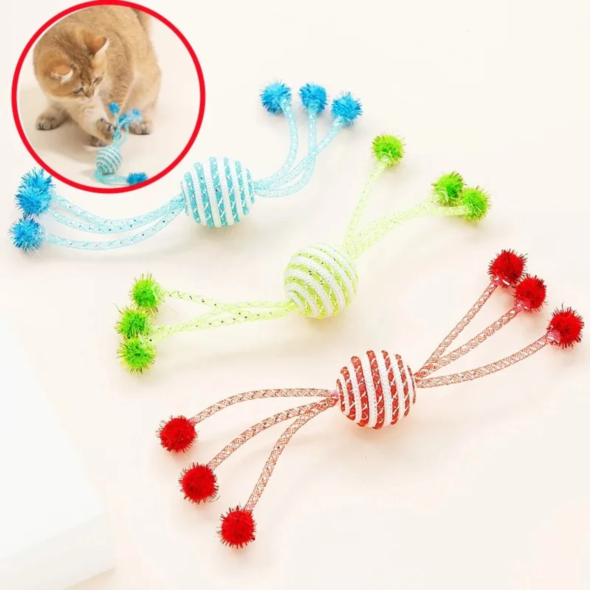 Juguete para gatos, tubo de red, cuerda para envolver, pelota para gatitos, juguete para hacer seis garras, juguetes interactivos para gatos