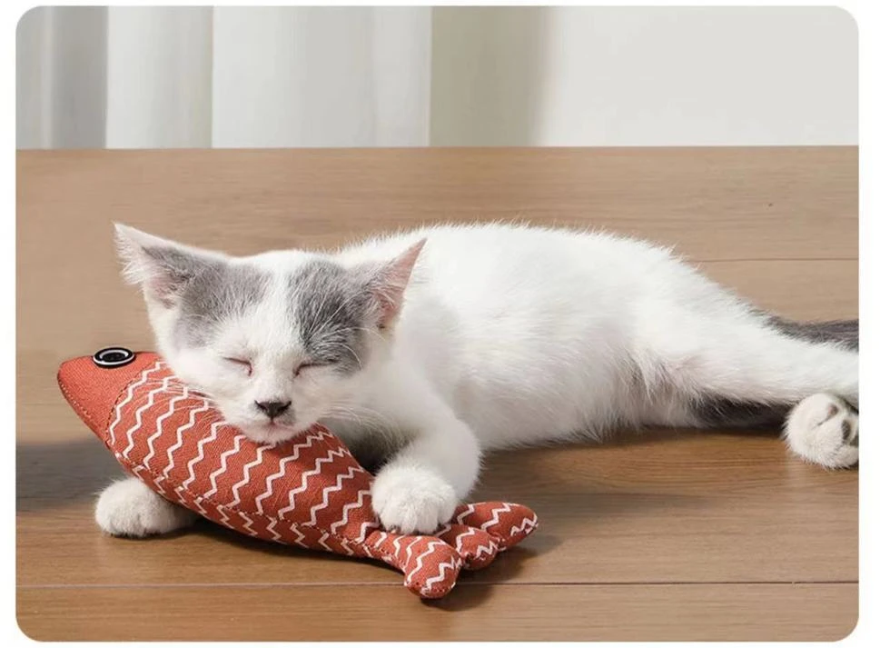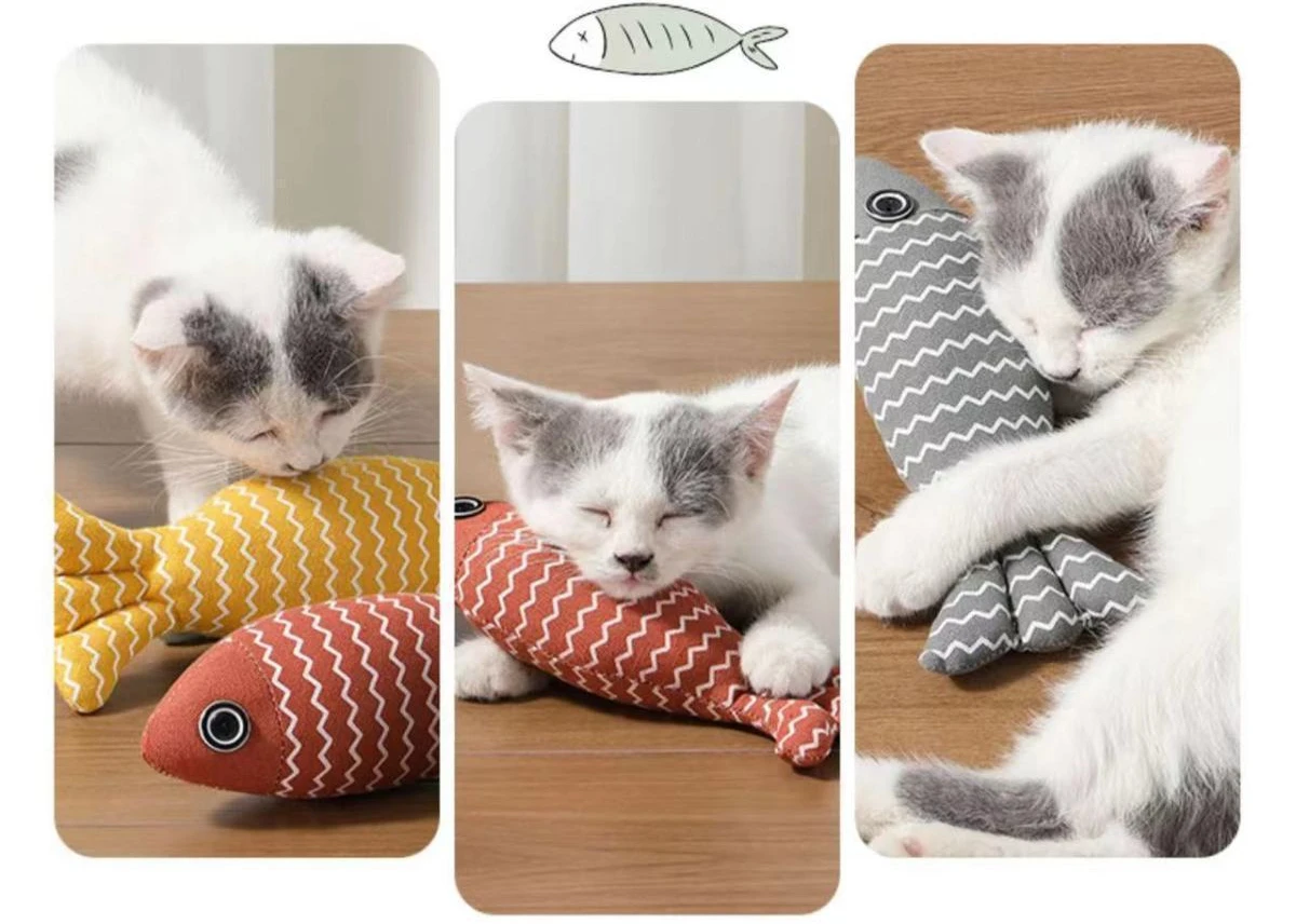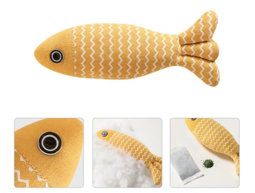 Juguete de hierba gatera en forma de pez, algodón PP relleno de lino suave y duradero, juguetes interactivos de ejercicio para gatos, productos para mascotas de Interior para gatitos
