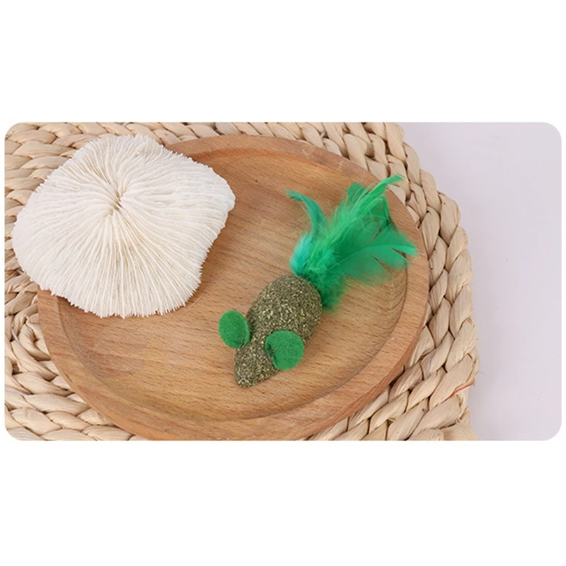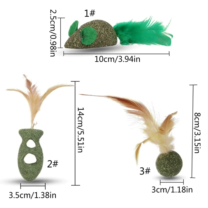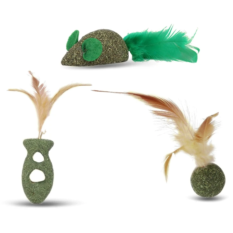 Múltiples opciones: hay 3 estilos de juguetes de plumas de gato para elegir, en forma de ratón, pez y bola.