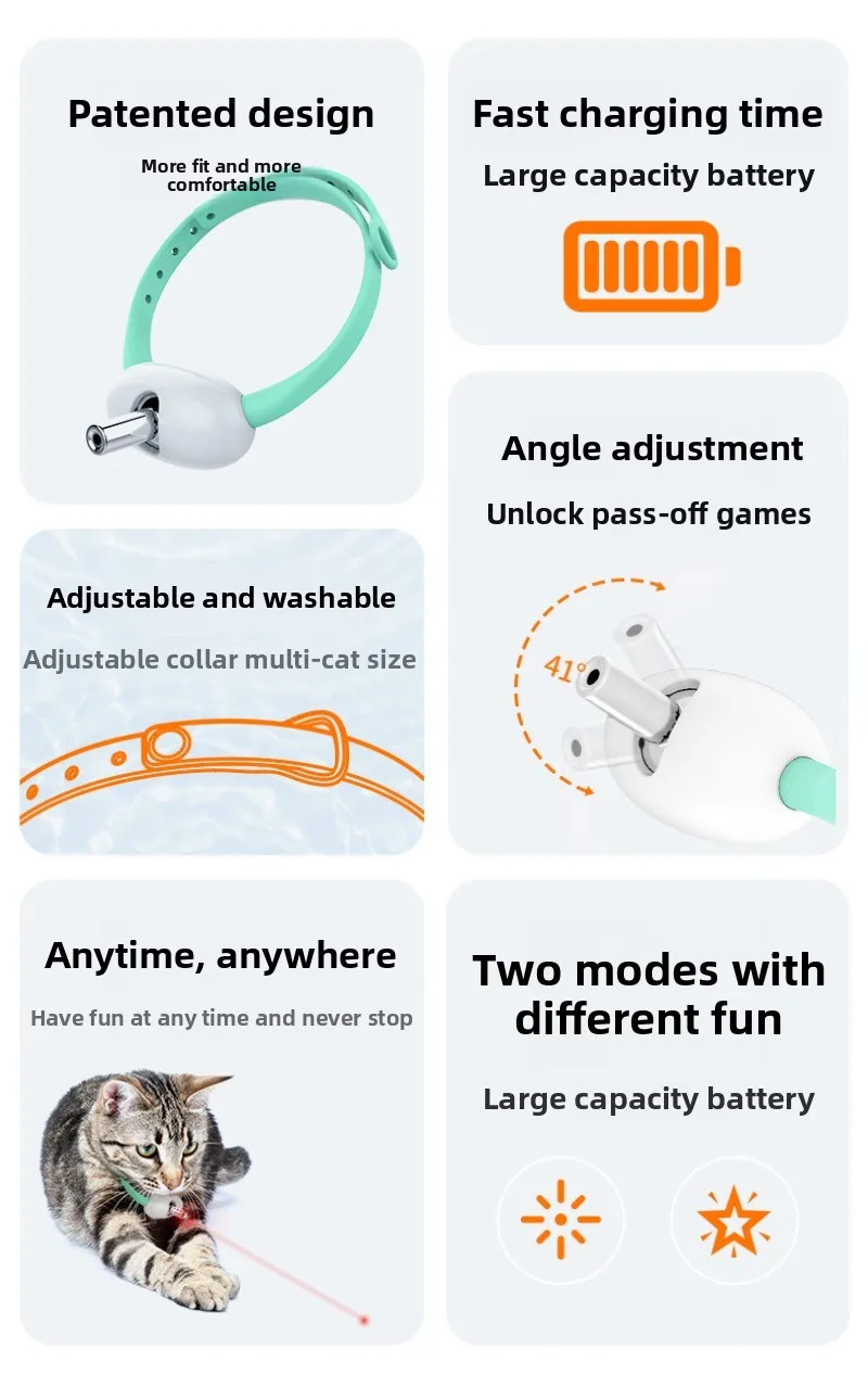 Descripción:Collar láser inteligente para provocar gatos, juguetes láser para provocar gatos, suministros para mascotas