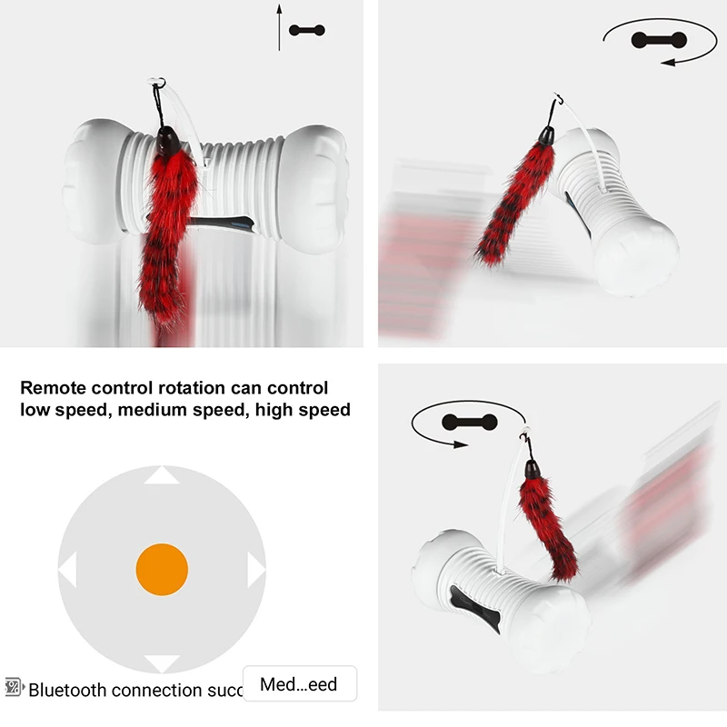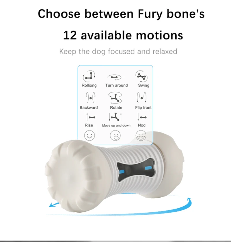Conecta Fury Bone a través de Bluetooth, puedes controlarlo manualmente. Puede elegir 9 modos de movimiento usando el joystick en vivo para dejar que su mascota lo persiga. Modo de reproducción automática, programación de hasta 60 minutos, atrae la atención de los perros, sin operación manual.