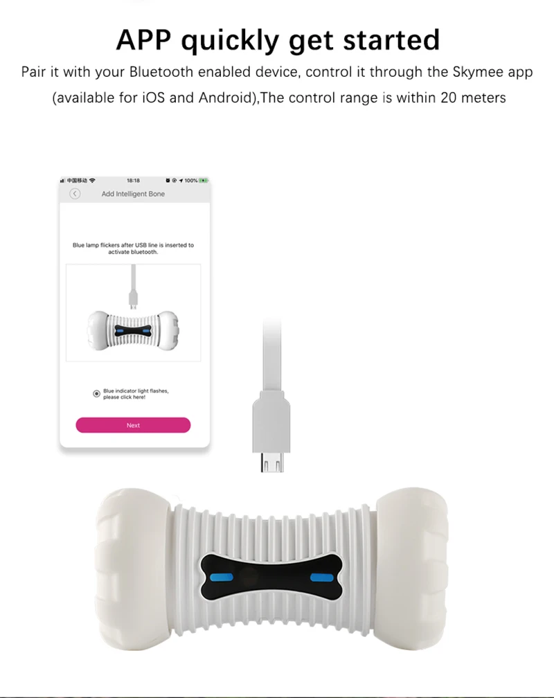 Smart Bone Game Companion está diseñado para ayudar a las personas a pasar horas de diversión con perros y gatos, entonces su mascota estará más cerca de usted que nunca. Definitivamente se convertirá en el juguete favorito de tu mejor amigo. Para un mejor uso, guíe a su mascota para que juegue.