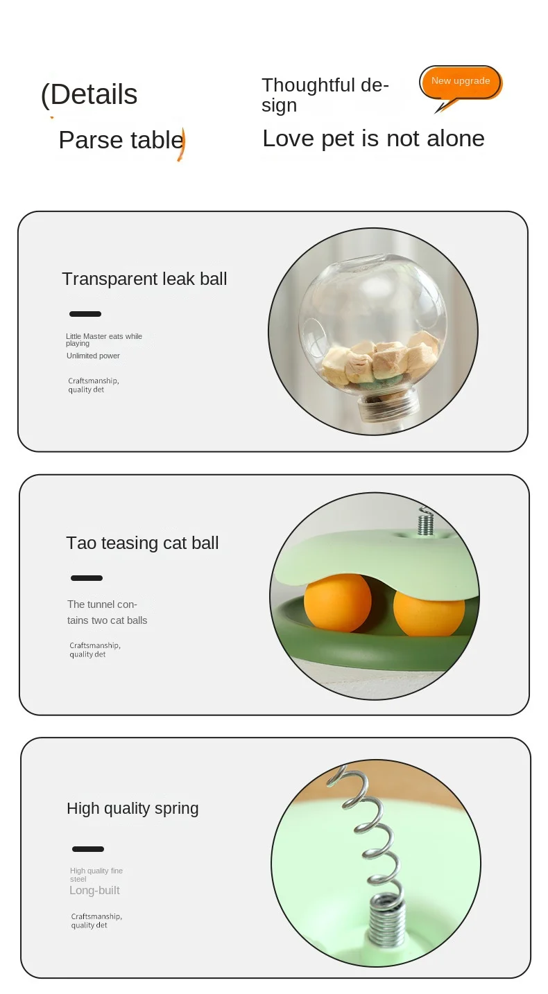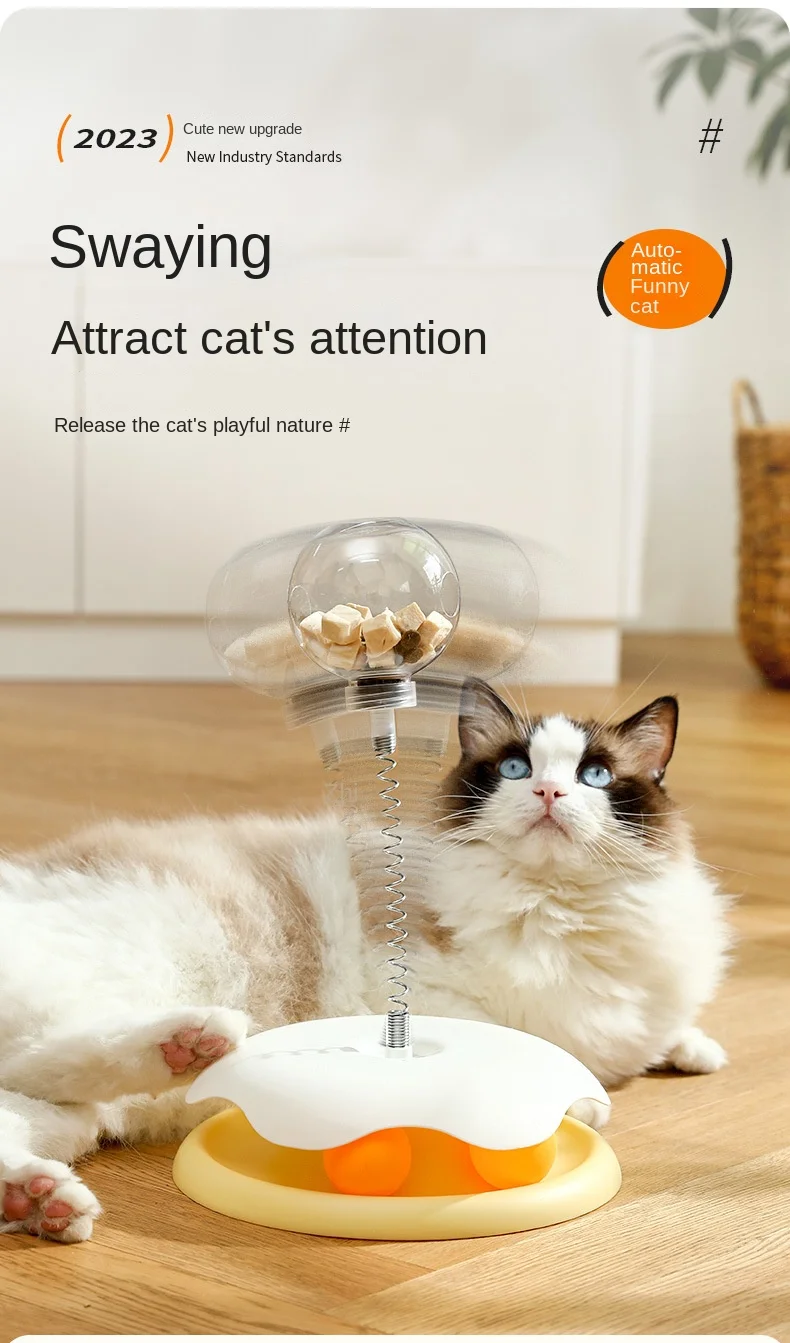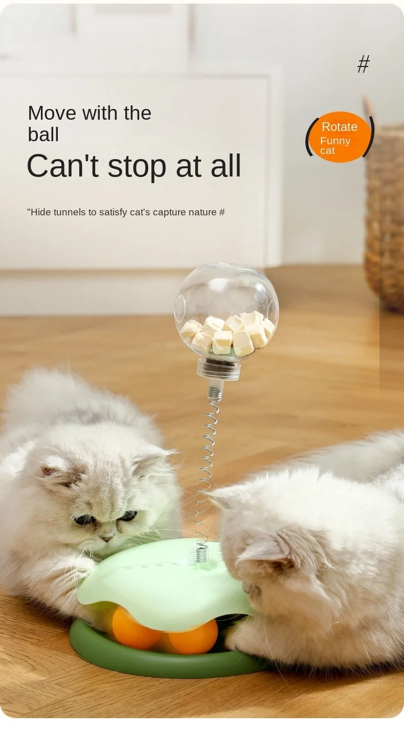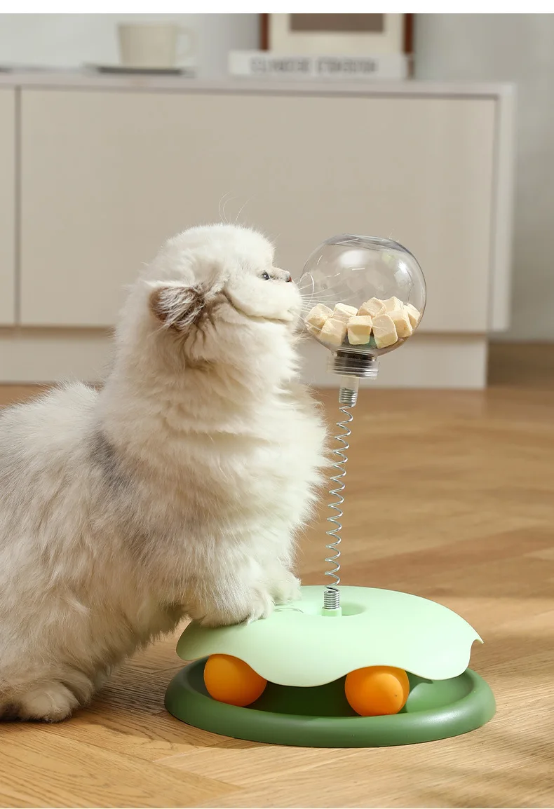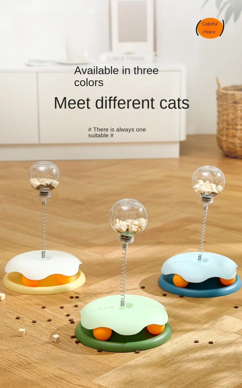 1.Este producto es un juguete giratorio para gatos, adecuado para el entretenimiento y el ejercicio de los gatos de interior.Este producto consta de una bola que gotea de comida de juguete para gatos y un palo para burlarse de gatos, que ayuda a los gatos a pasar su tiempo y energía a través de la interacción y las recompensas.