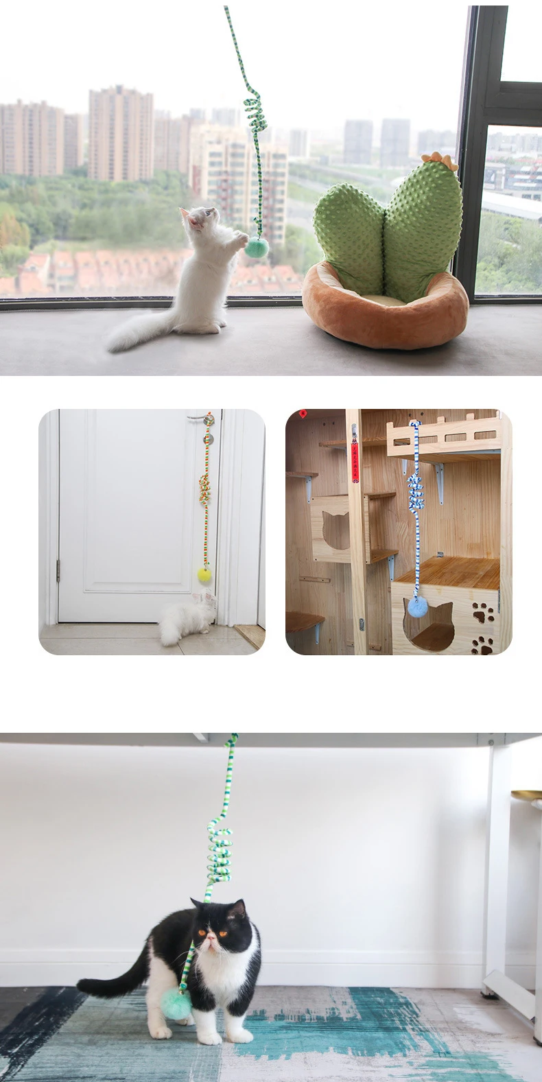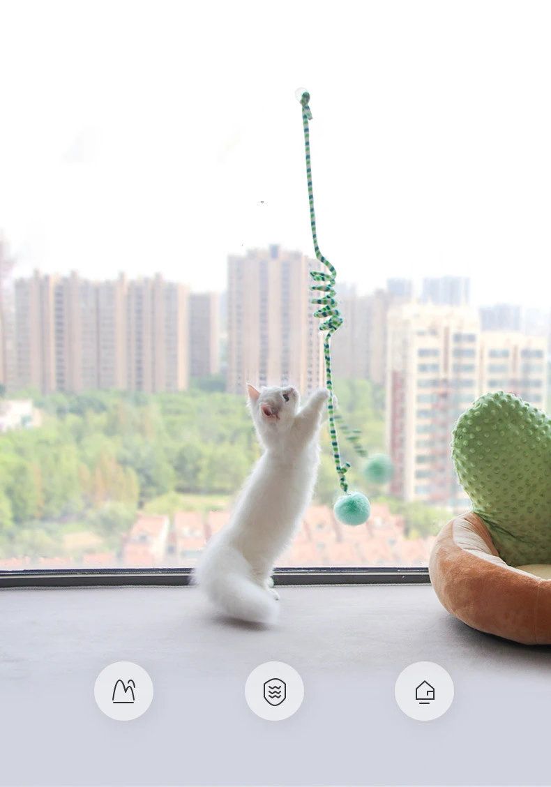 Corta cuerda, intenté alisar la primavera, se volvió un poco más largo. Aún no juegan los gatos, me gustó el juguete.
