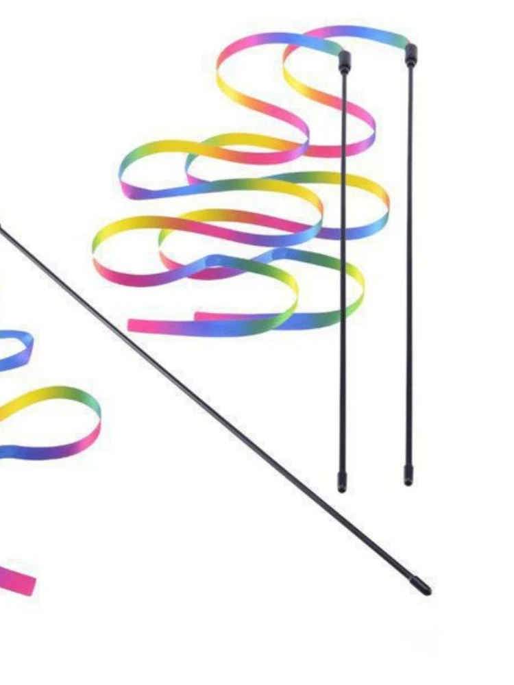 Juguete interactivo divertido para gato, palo teaser con cinta de arcoíris de doble cara, suministros para mascotas