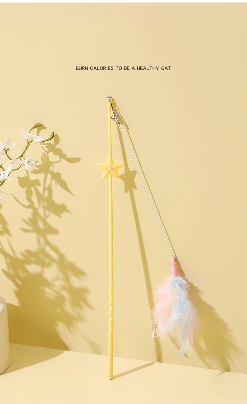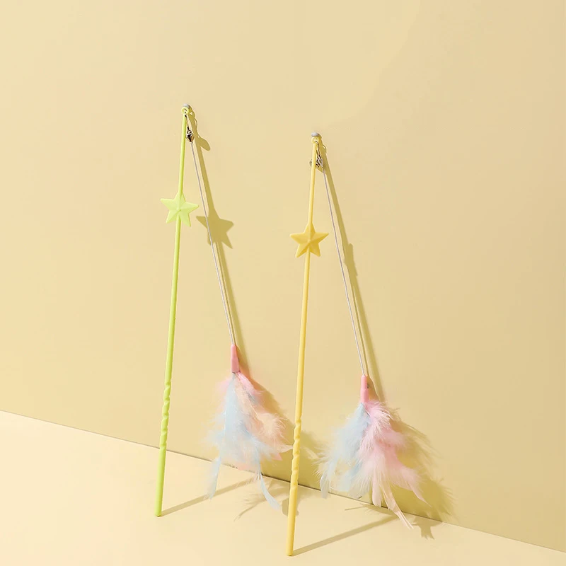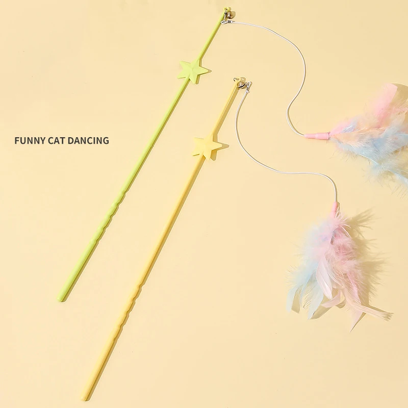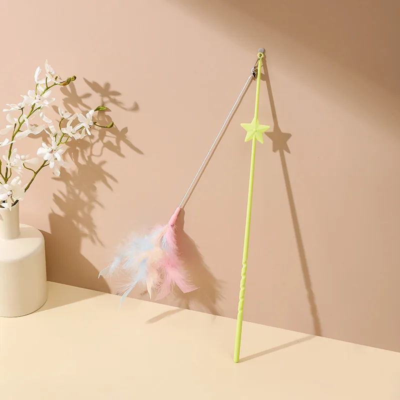 Juguete interactivo divertido para mascotas, varita resistente a las mordeduras, cuentas de campana de plumas, Gato y gatito