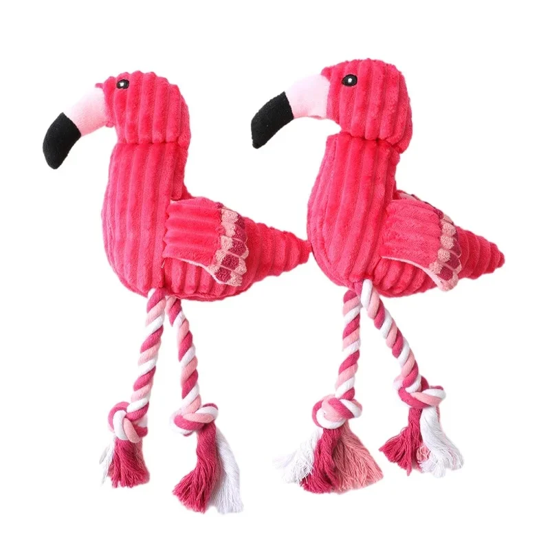 Juguete interactivo divertido para perros de peluche con flamenco rosa, con cuerda para masticar, bonito efecto de sonido, adecuado para mascotas pequeñas a grandes
