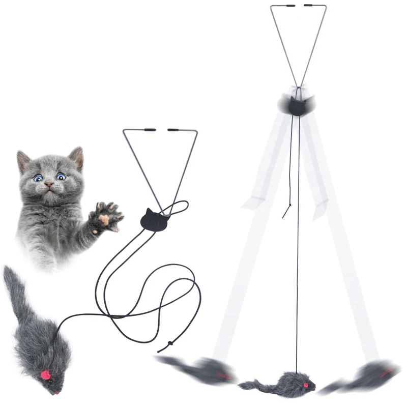 1.Material: este juguete para gatos está hecho de felpa, pluma, cuerda elástica, metal, que es seguro y duradero.