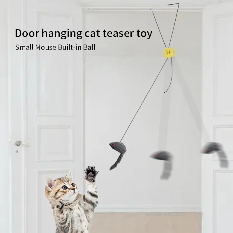 1.Material: este juguete para gatos está hecho de felpa, pluma, cuerda elástica, metal, que es seguro y duradero.