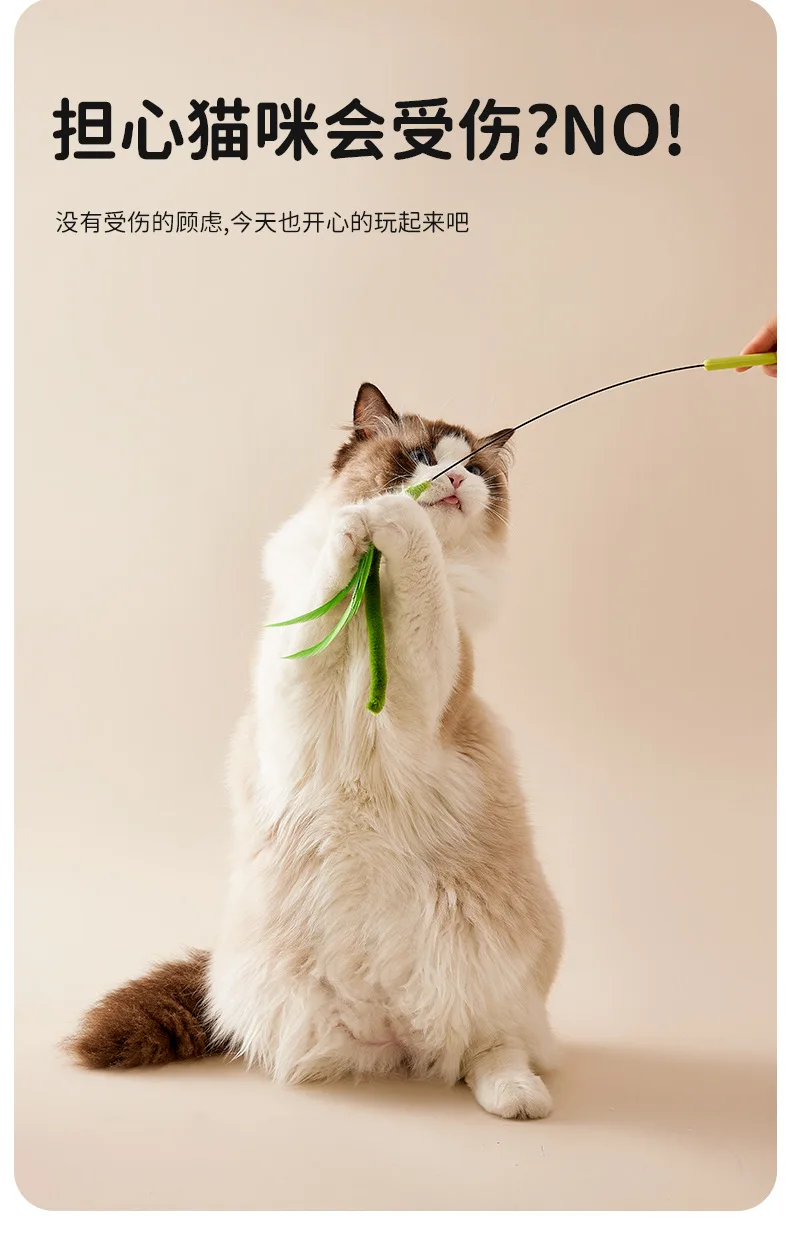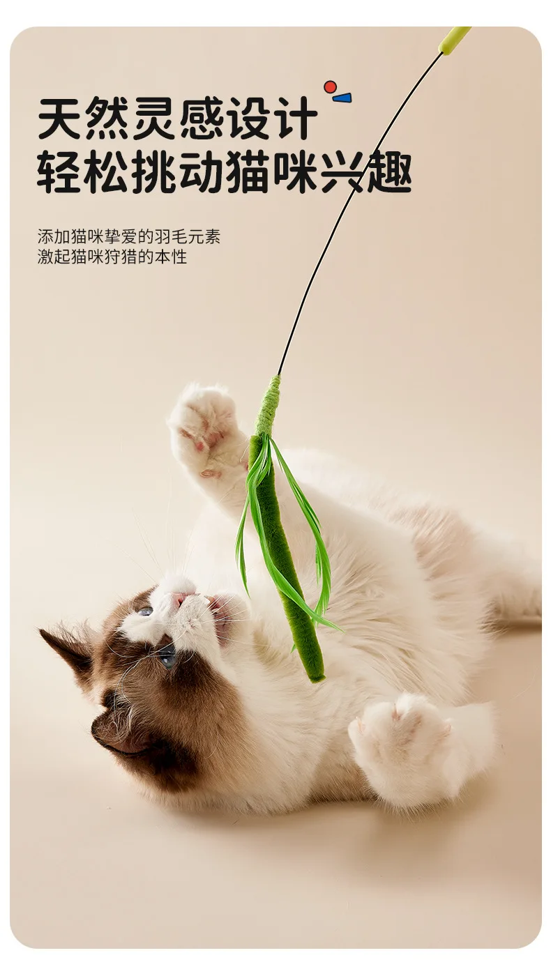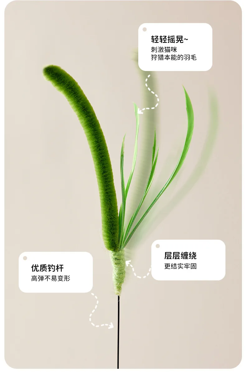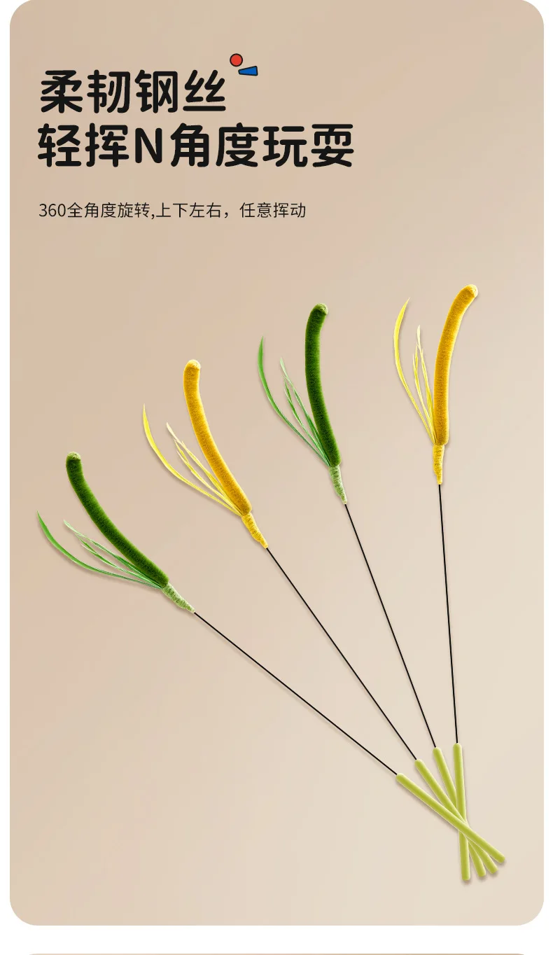 Juguete interactivo para gatos, cola de perro, hierba, perro, pluma de salvia, poste largo, palo de burlas para gatos, juguete con sonido resistente a mordeduras, suministros para mascotas