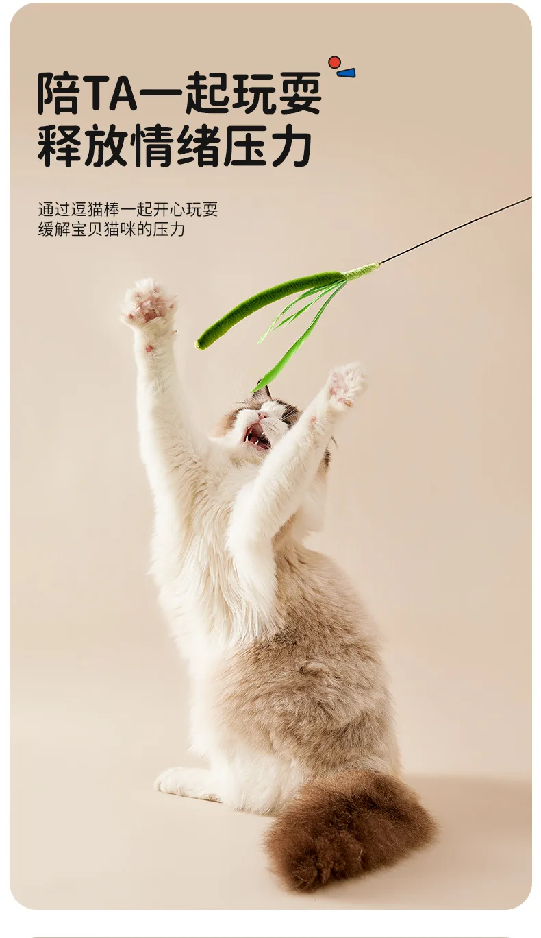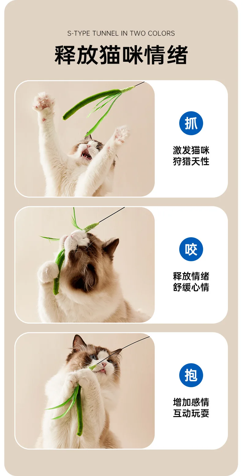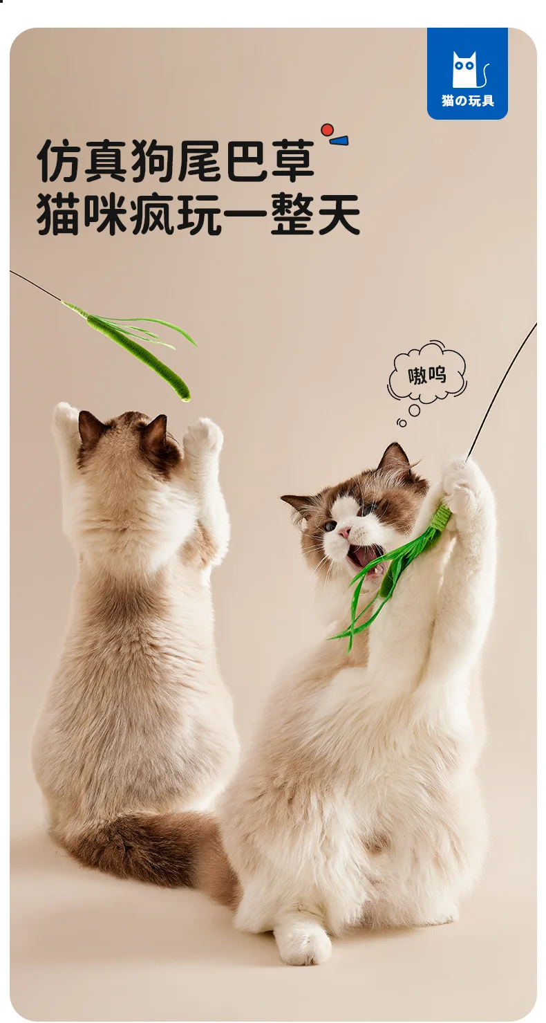 Juguete interactivo para gatos, cola de perro, hierba, perro, pluma de salvia, poste largo, palo de burlas para gatos, juguete con sonido resistente a mordeduras, suministros para mascotas