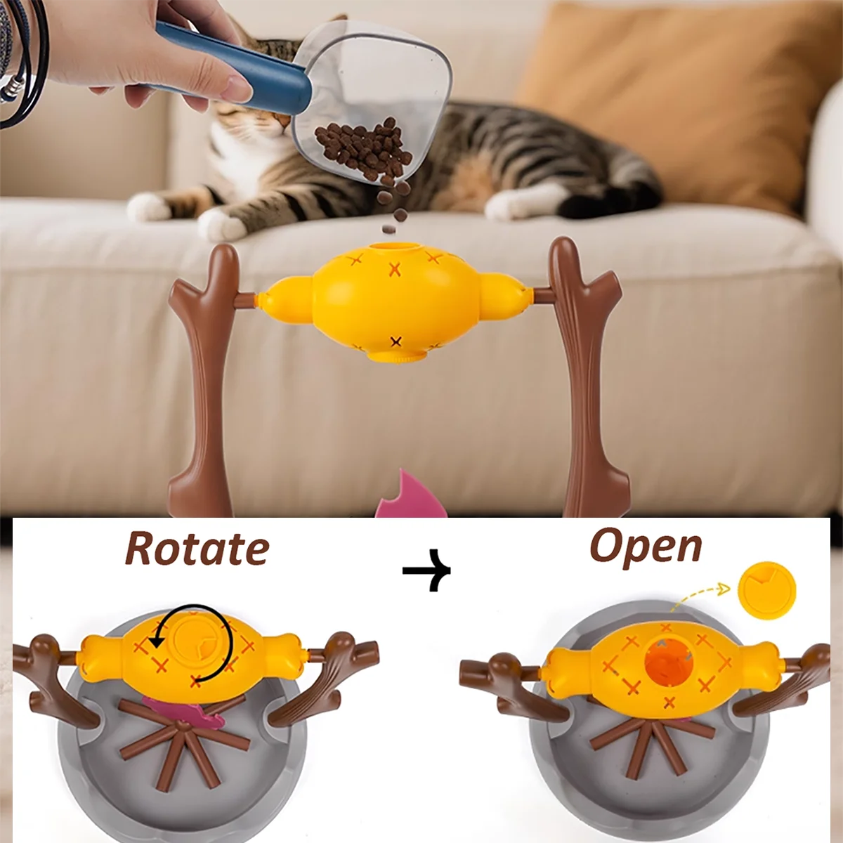 Este juguete también sirve como dispensador de comida, animando a tu gato a jugar mientras lo recompensa con golosinas.