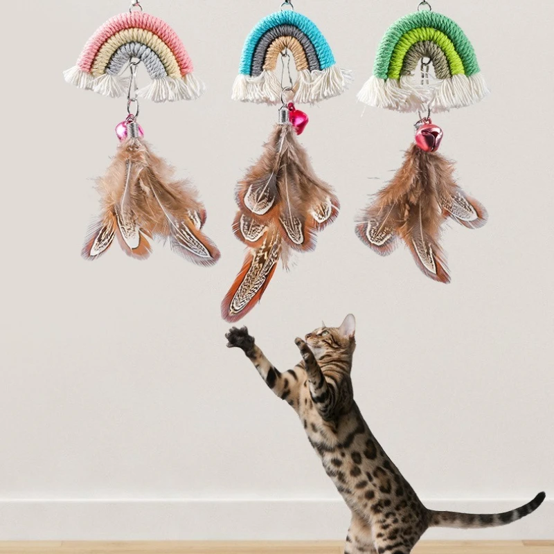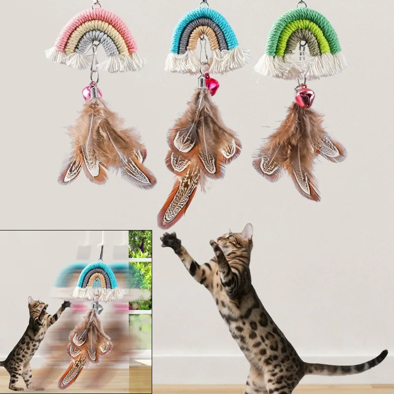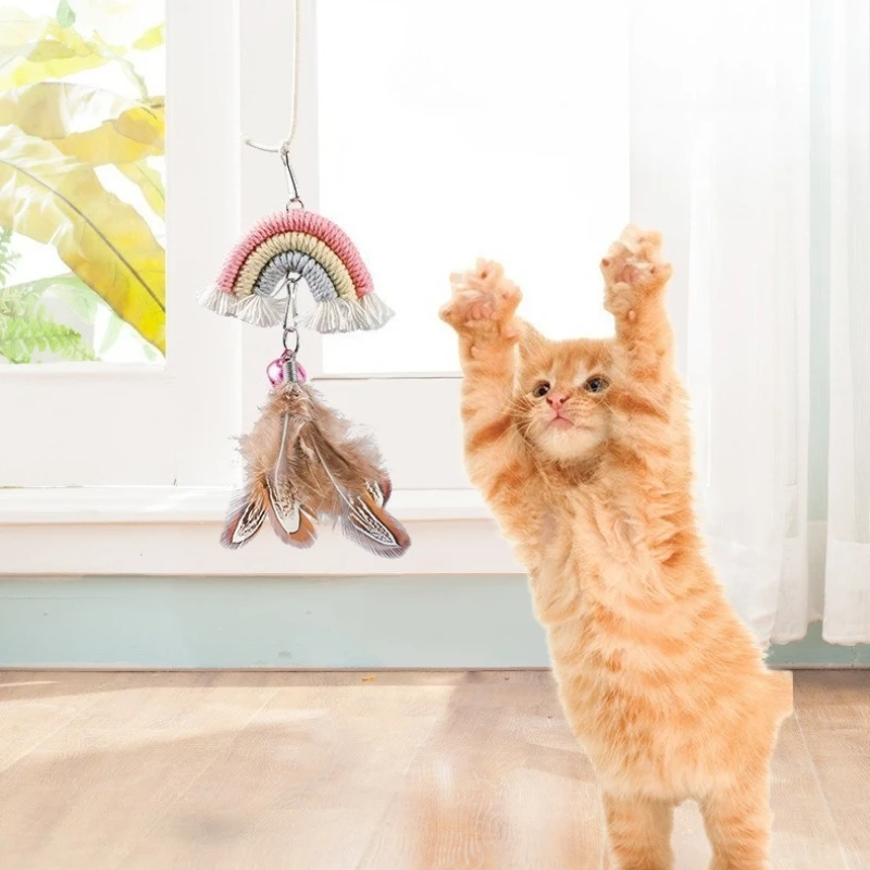 Juguete interactivo para gatos, juguete interactivo para colgar en la pared con campana, juguete interactivo autohéroe para gatitos, varita de juguete