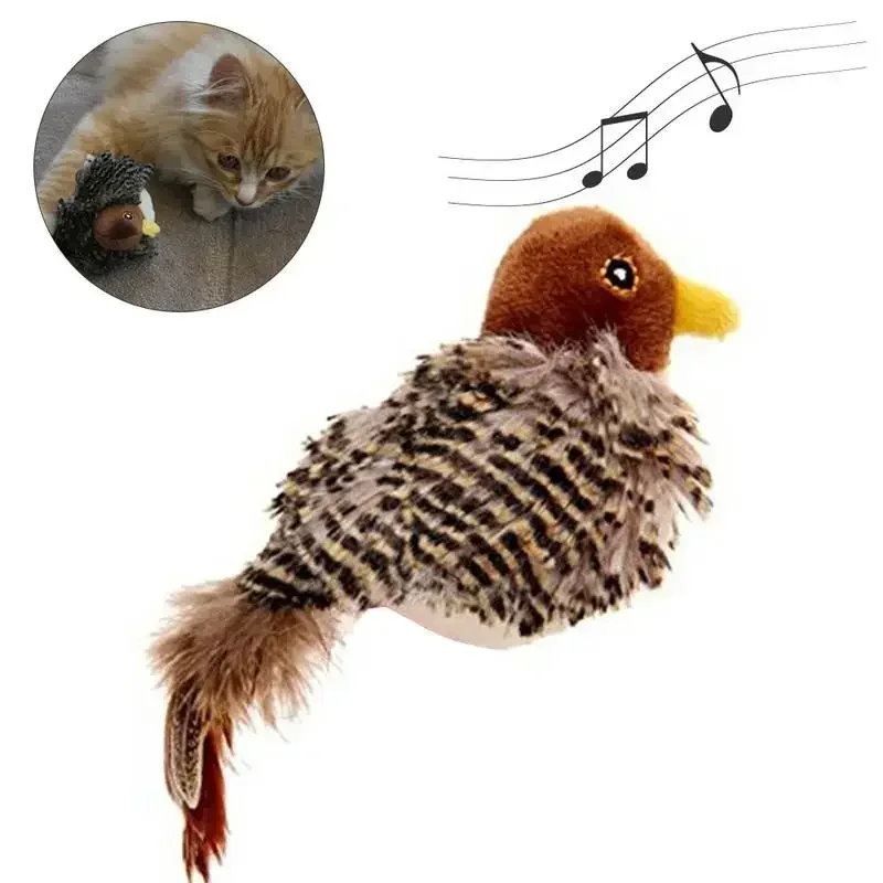 Juguete interactivo para gatos, pájaro chirping eléctrico simulado, juguete de peluche para gatos, juguete para gatos con plumas para mascotas, juguete para pájaros