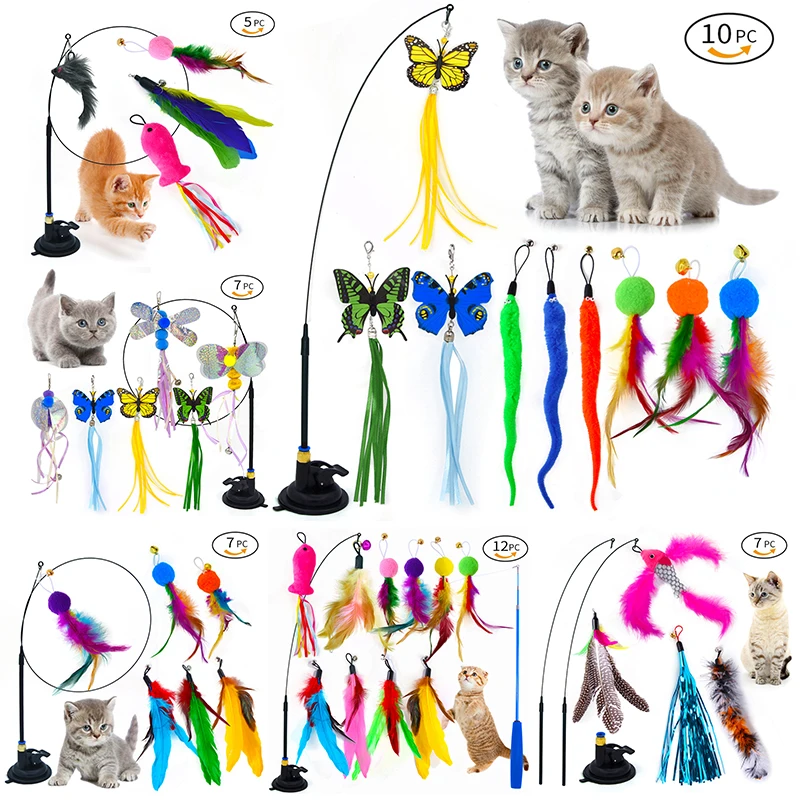 Juguete interactivo para gatos, palo para gatos manos libres, juego de gatito, varita de juguete, ventosa, pájaro/pluma, varita para gatos, juego de juguetes