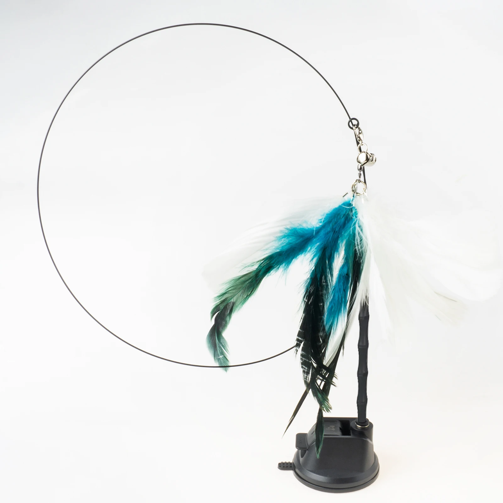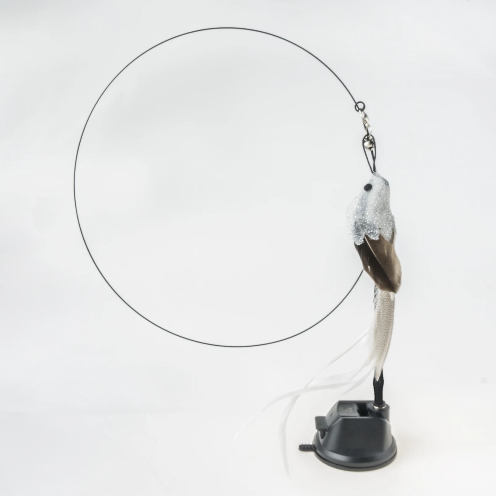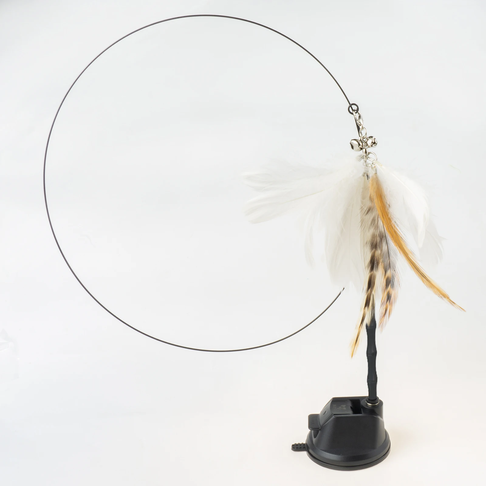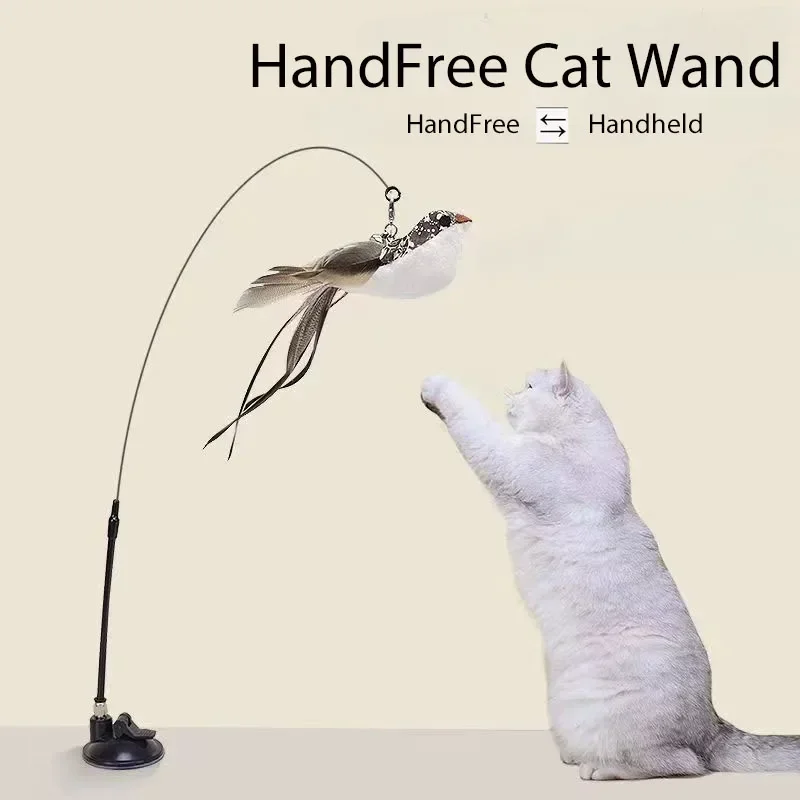 Dispositivo muy bueno, a mi gato le encanta el juguete con plumas y el palo es agradable y elástico. A mi gato le fascina. Se fija fácilmente a espejos y ventanas. Recomendando.