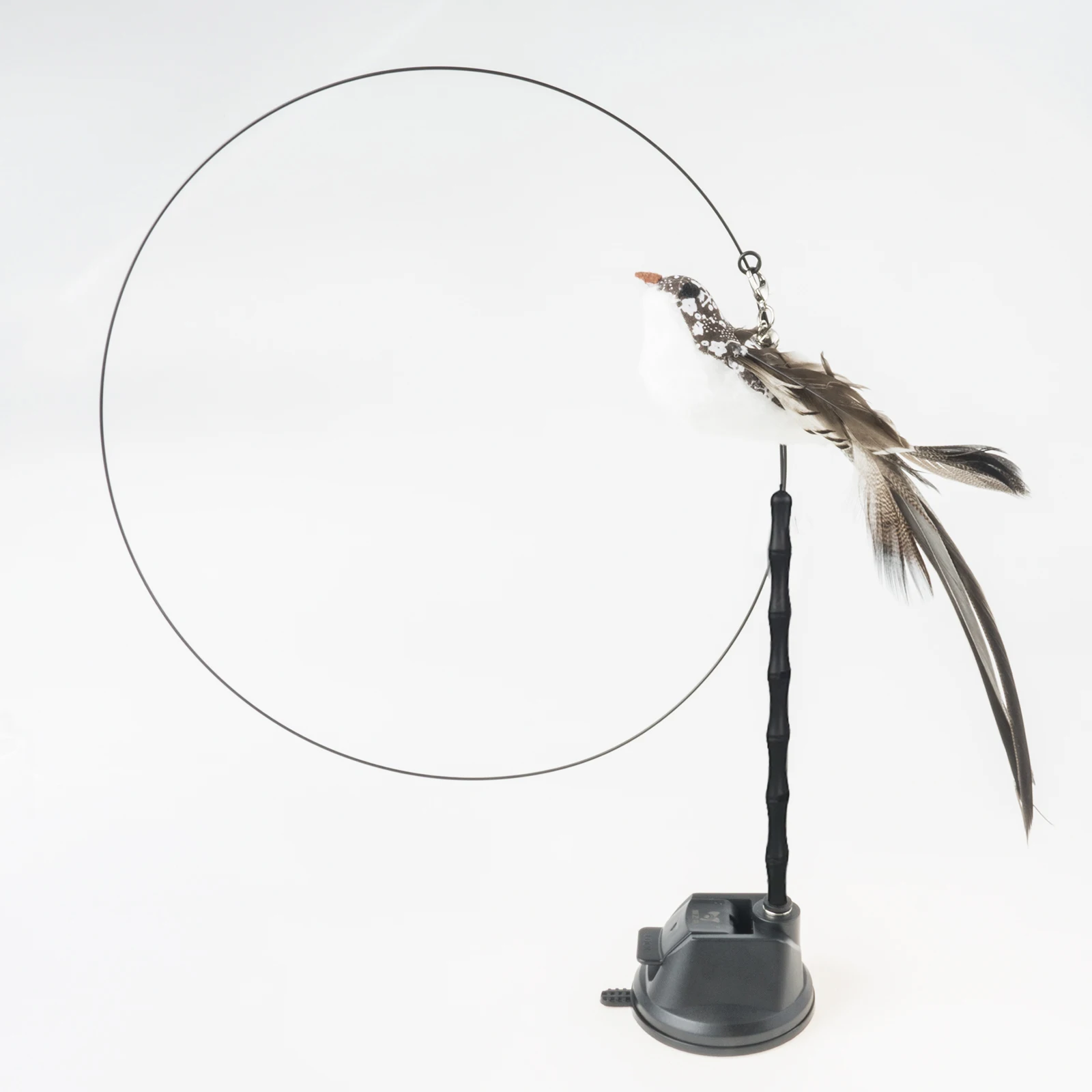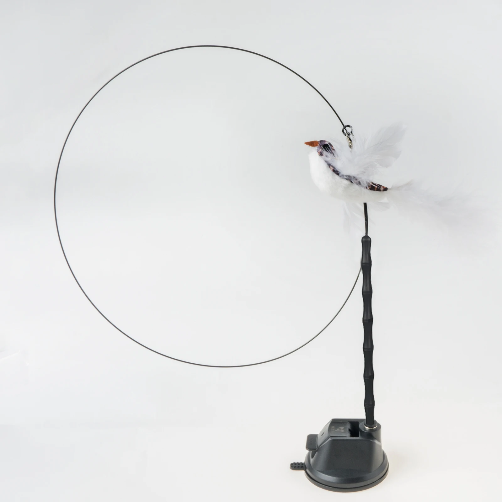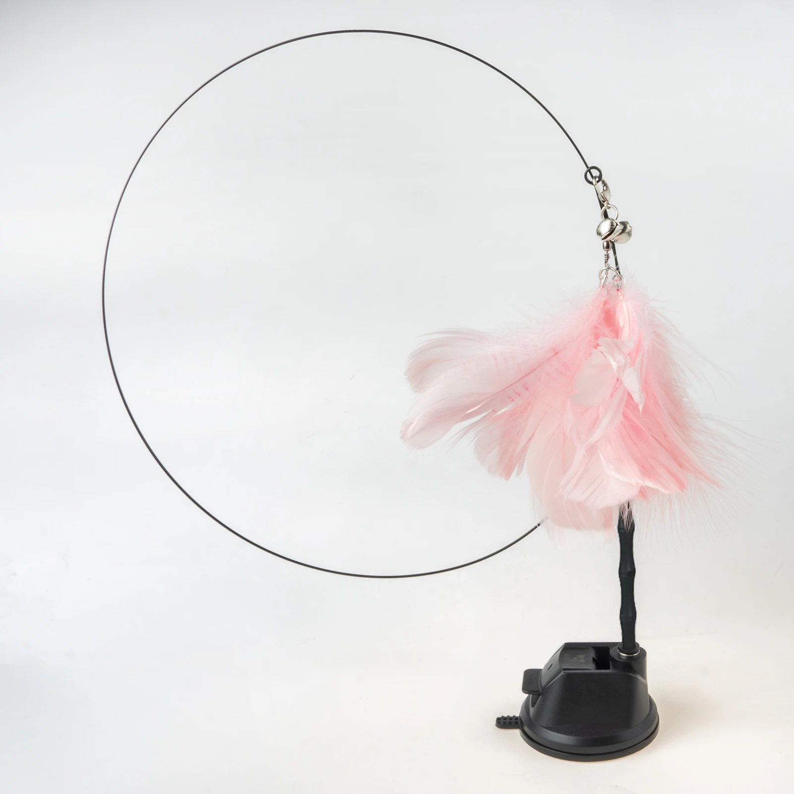 Dispositivo muy bueno, a mi gato le encanta el juguete con plumas y el palo es agradable y elástico. A mi gato le fascina. Se fija fácilmente a espejos y ventanas. Recomendando.
