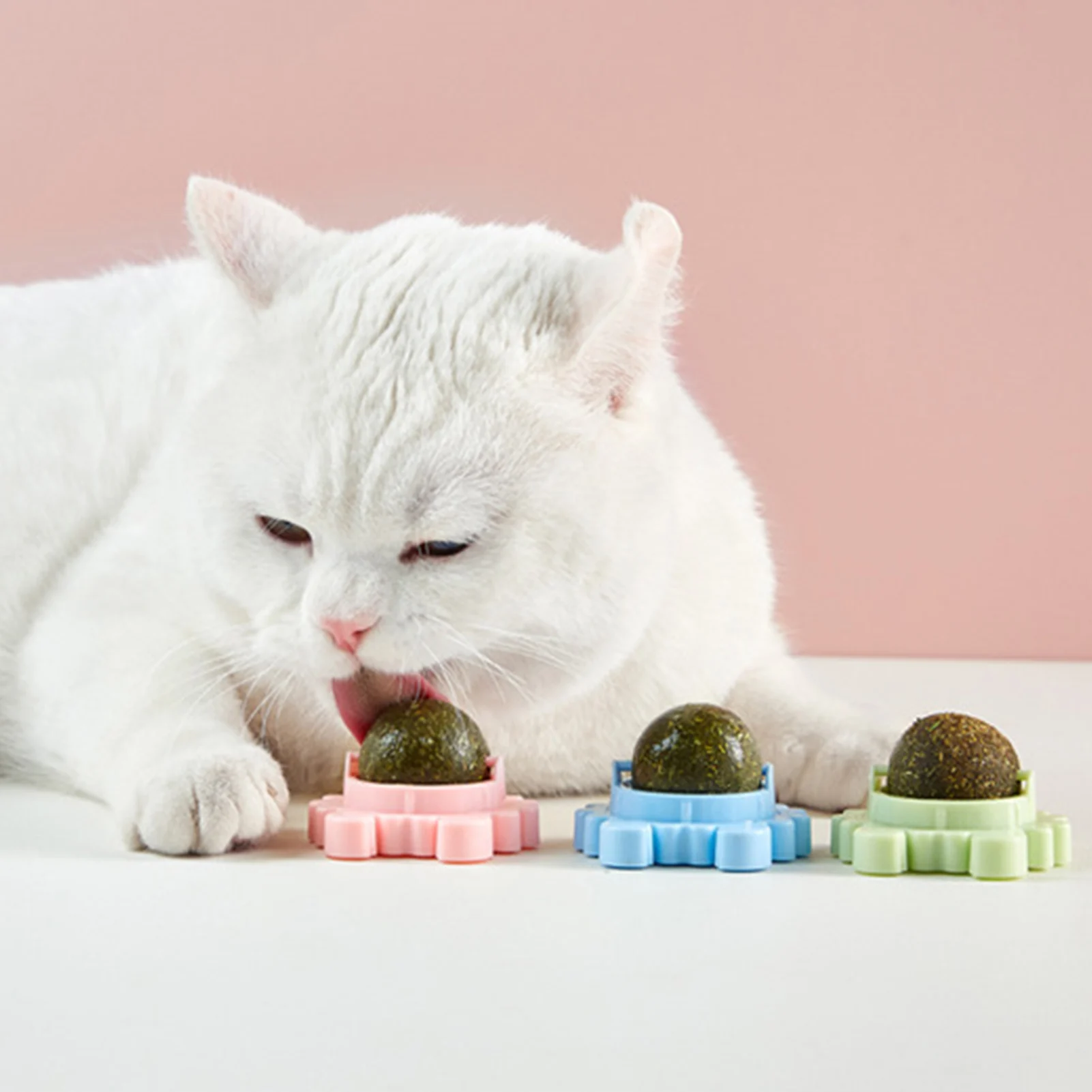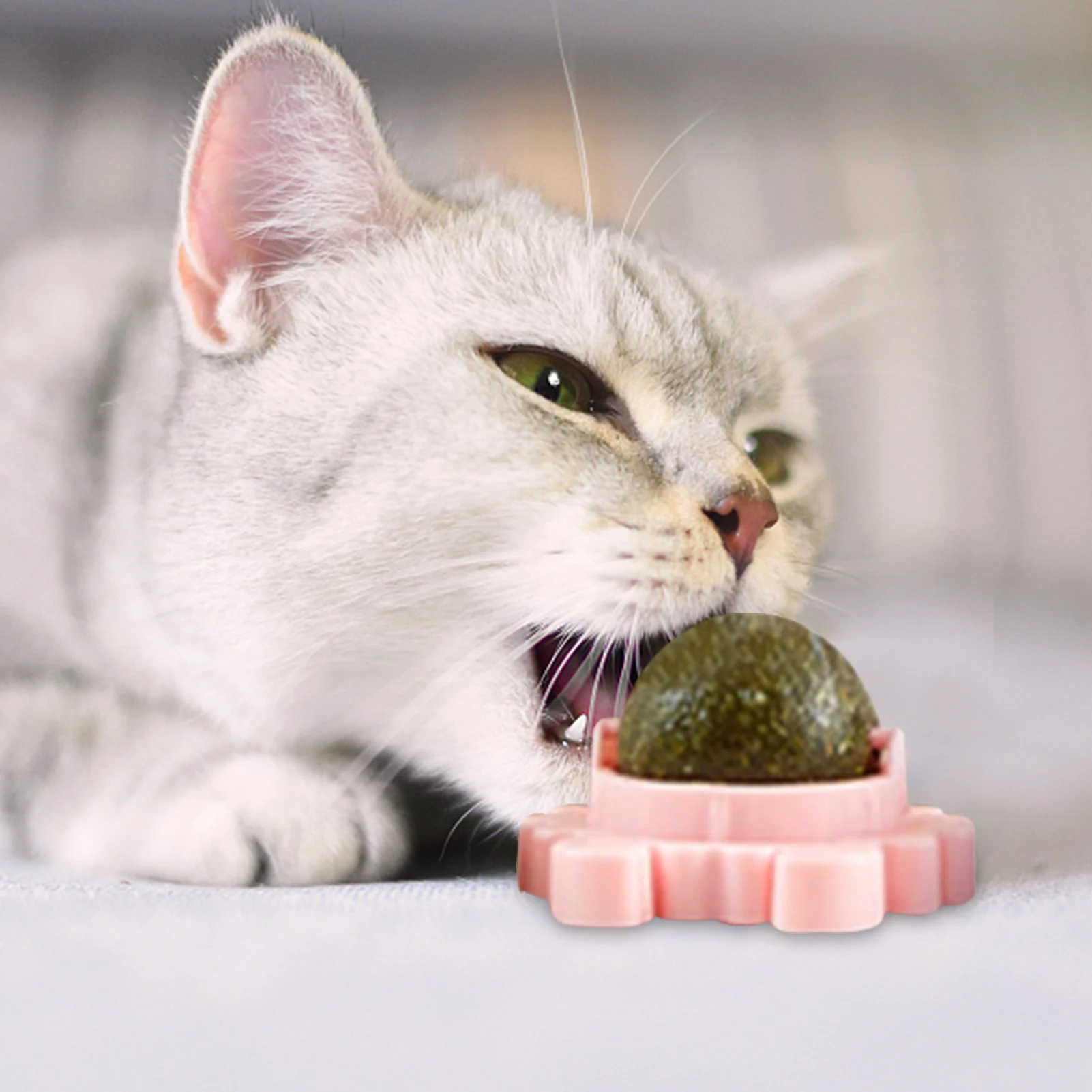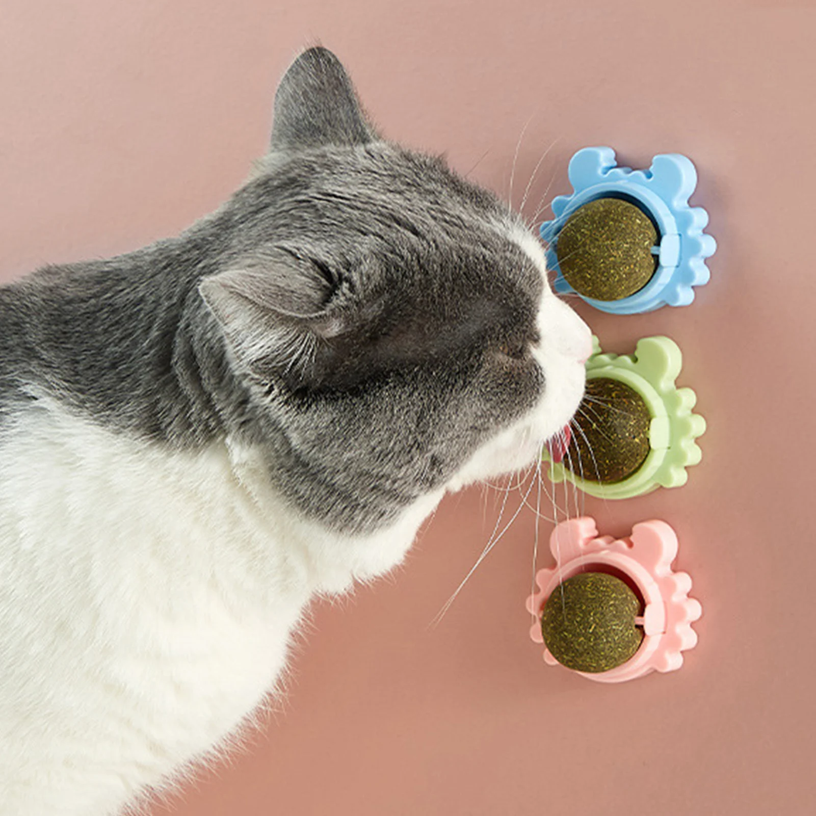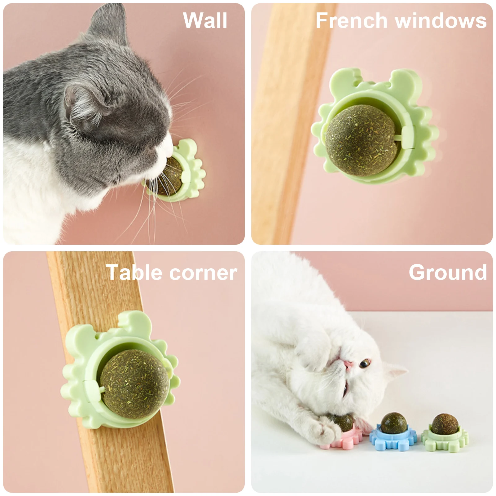 3. Diseño práctico: El Juguete para gatos se puede pegar fácilmente a la pared u otra superficie con una fuerte fuerza adhesiva, y no se caerá Cuando el gatito Lame y juegue. Rotación de 360 ° cuando se lamen 3 bolas.
