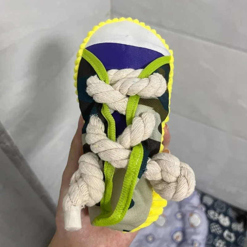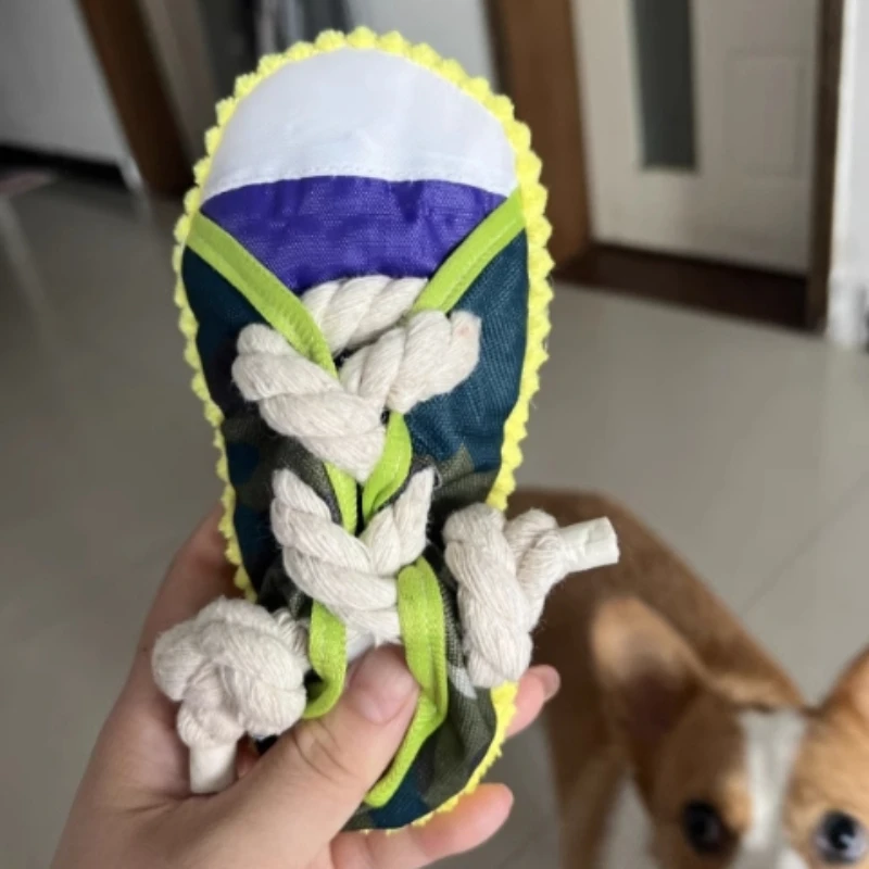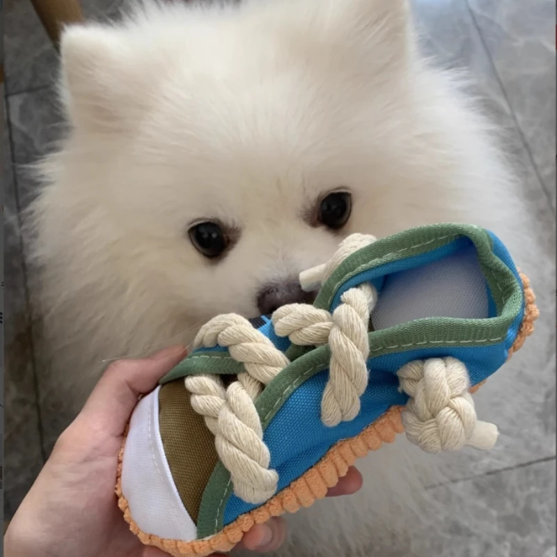 Juguete interactivo para masticar para perros, juguete de cuerda con forma de zapatillas para limpieza de dientes, zapatos molares para cachorros resistentes a mordeduras chirriantes