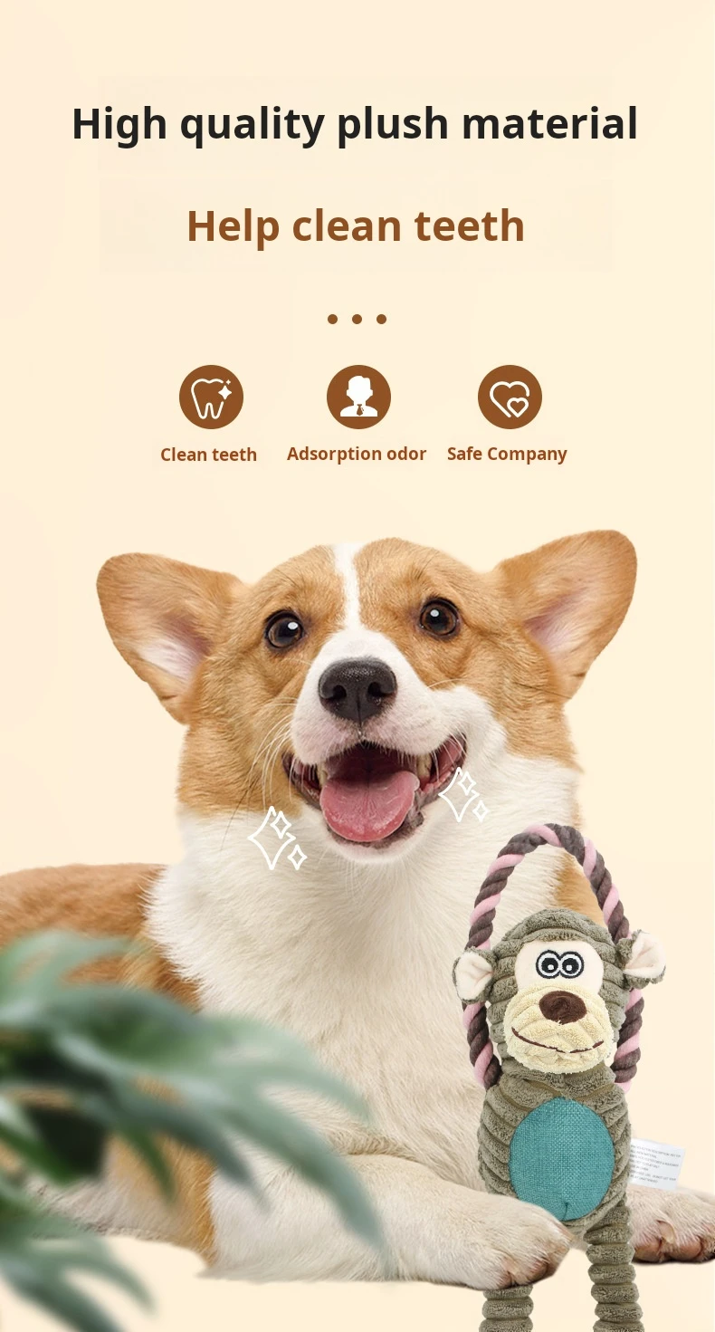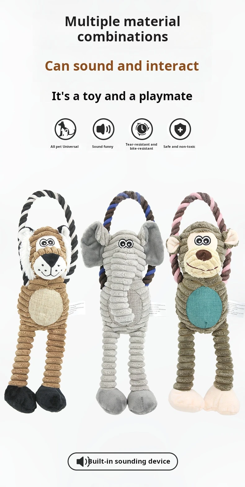 Juguete interactivo de peluche para mascotas, mono, León, elefante, cuerda de algodón de nailon, anillo de tracción, resistente a mordeduras, suministros de juguetes para mascotas