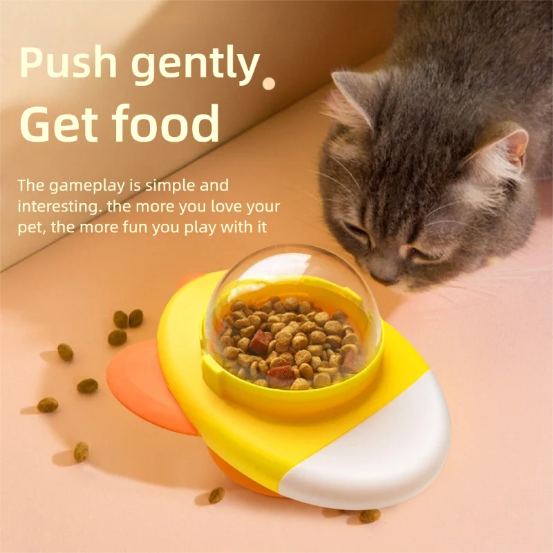 Juguete interactivo para perros y gatos, dispensador automático de comida para mascotas, diseño de pato de dibujos animados, comida lenta, alimentador de aperitivos para mascotas para entrenamiento de perros