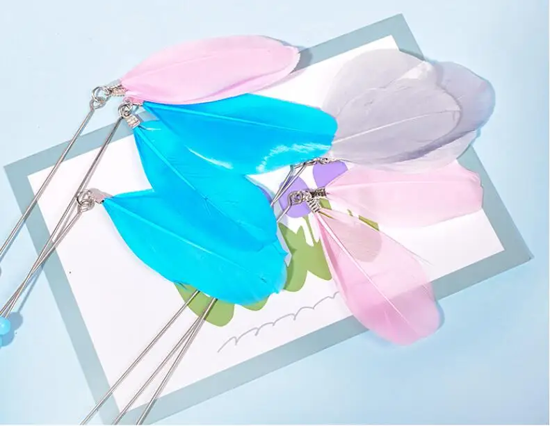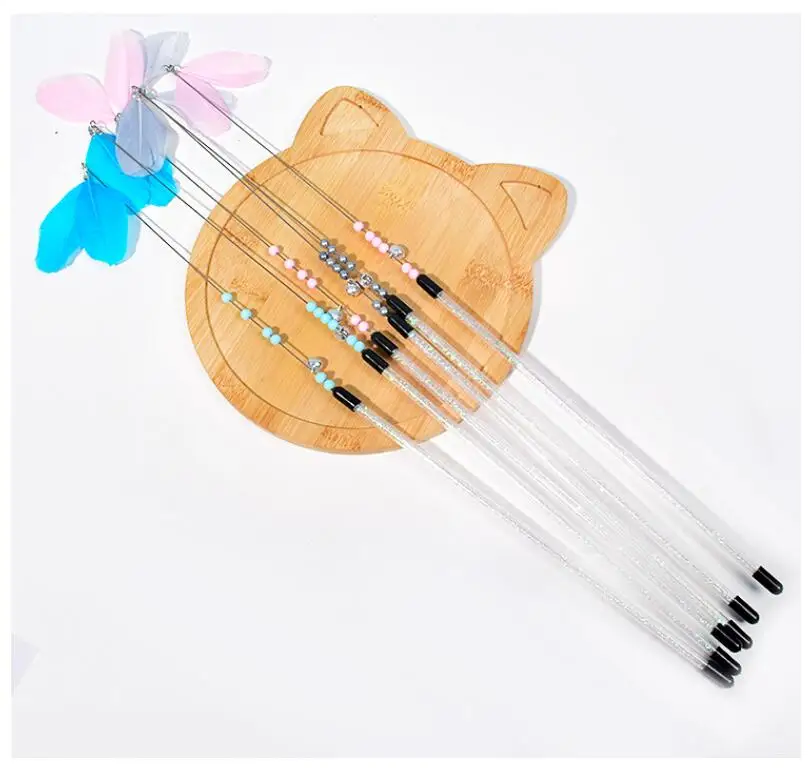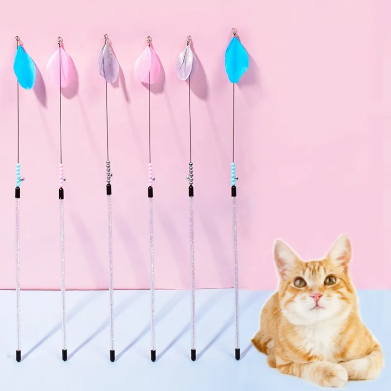Juguete interactivo de plumas para gatos, palo Teaser de alambre de acero, mango largo, palos de entrenamiento, productos para mascotas