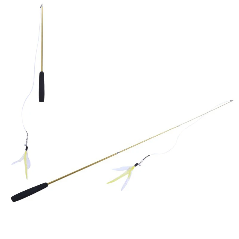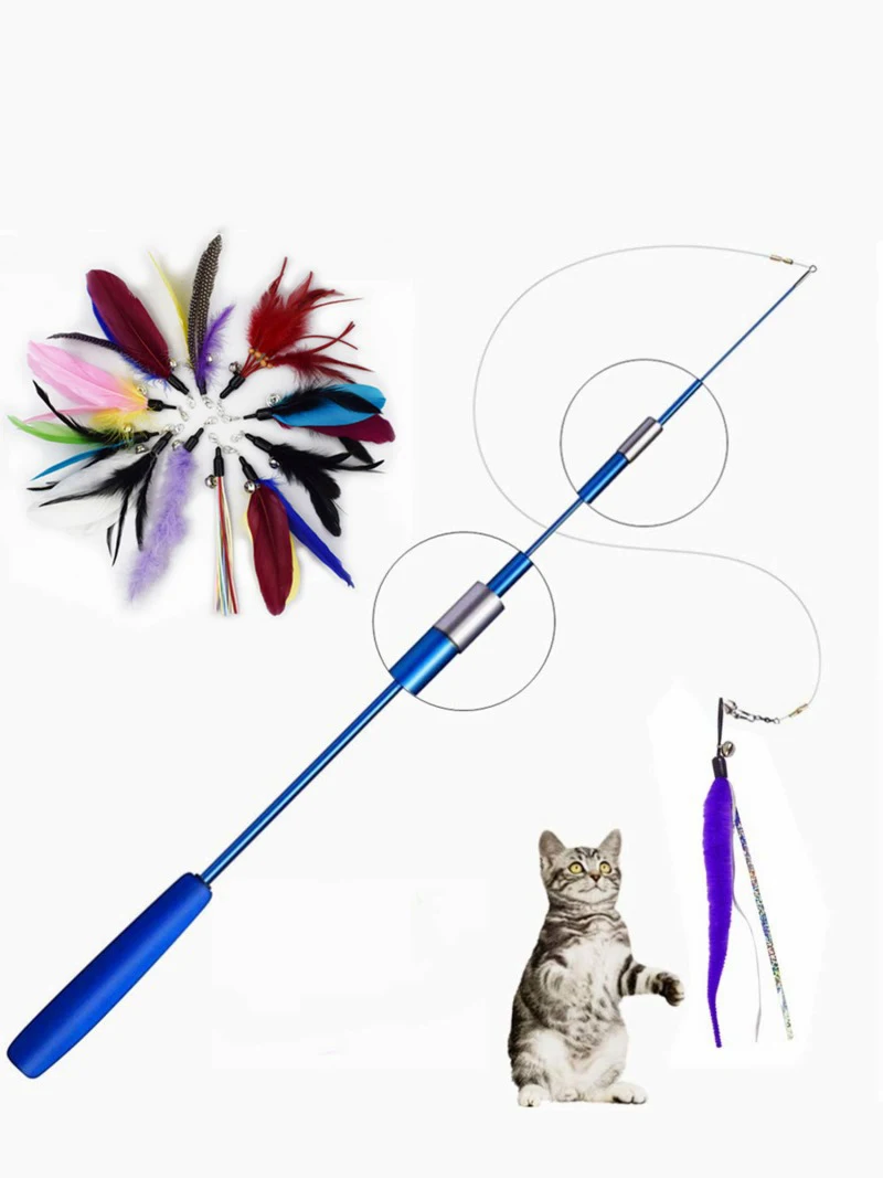 Recibí un juego de productos incompleto. Desafortunadamente, mi gato no sabe jugar sin plumas.