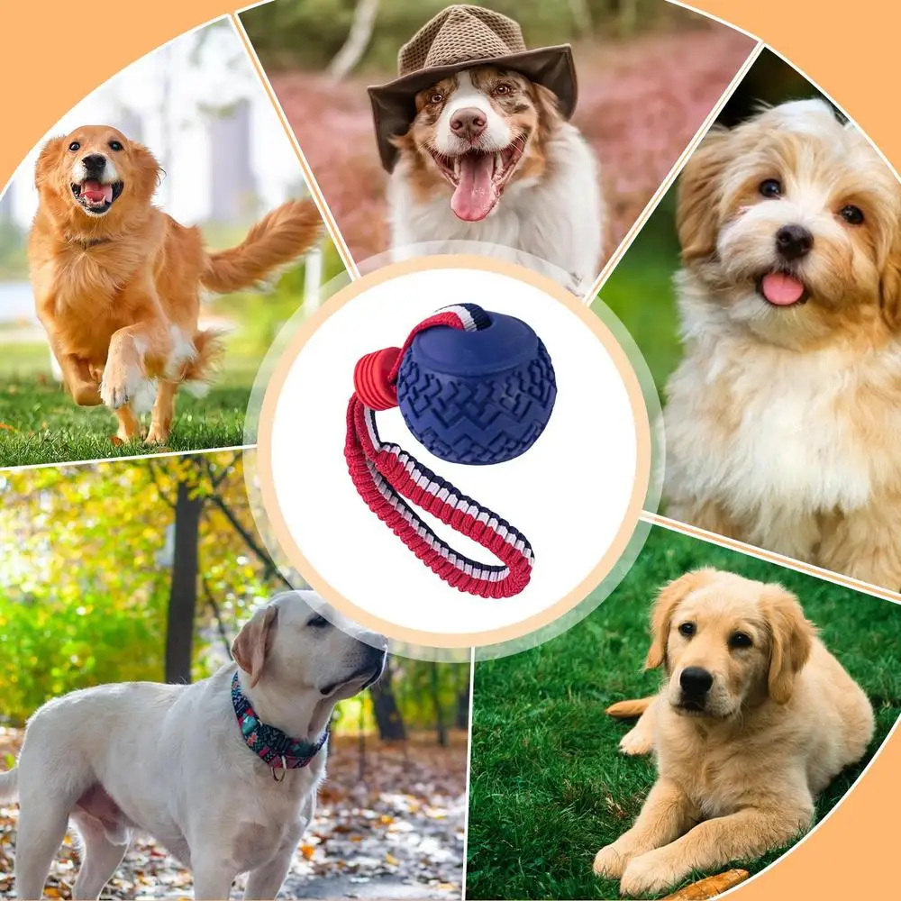 4. Excelente durabilidad: elaborado con material de goma termostático, este juguete para perros con bola de cuerda es suave, resistente al desgaste y no es fácil de deformar, lo que garantiza un juego seguro y duradero.