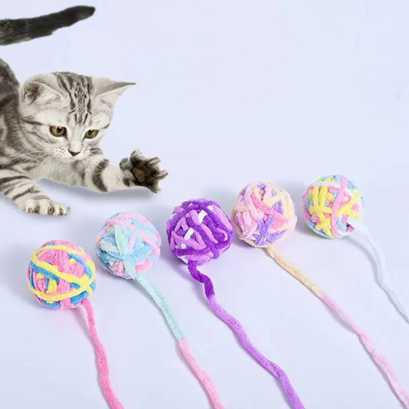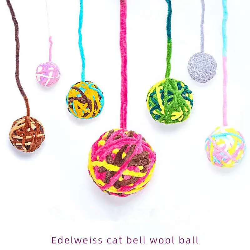 Juguete de lana para gatos, Bola de felpa con campana, resistente a las mordeduras, productos interactivos para mascotas
