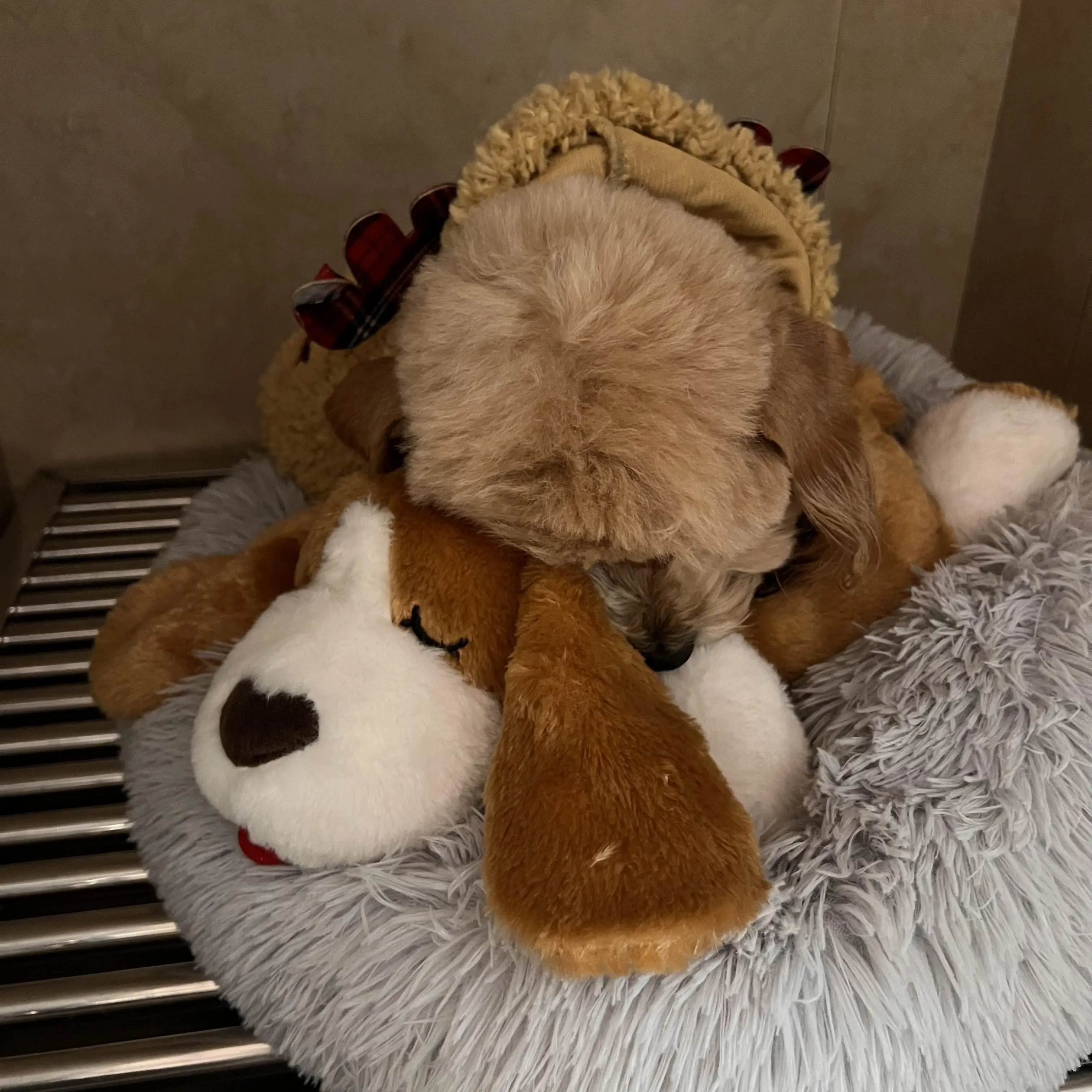 Whatever the case is; whether puppy crate training, a new transition, traveling, fireworks, or perhaps a thunderstorm, this puppy sleeping buddy will be there to help.