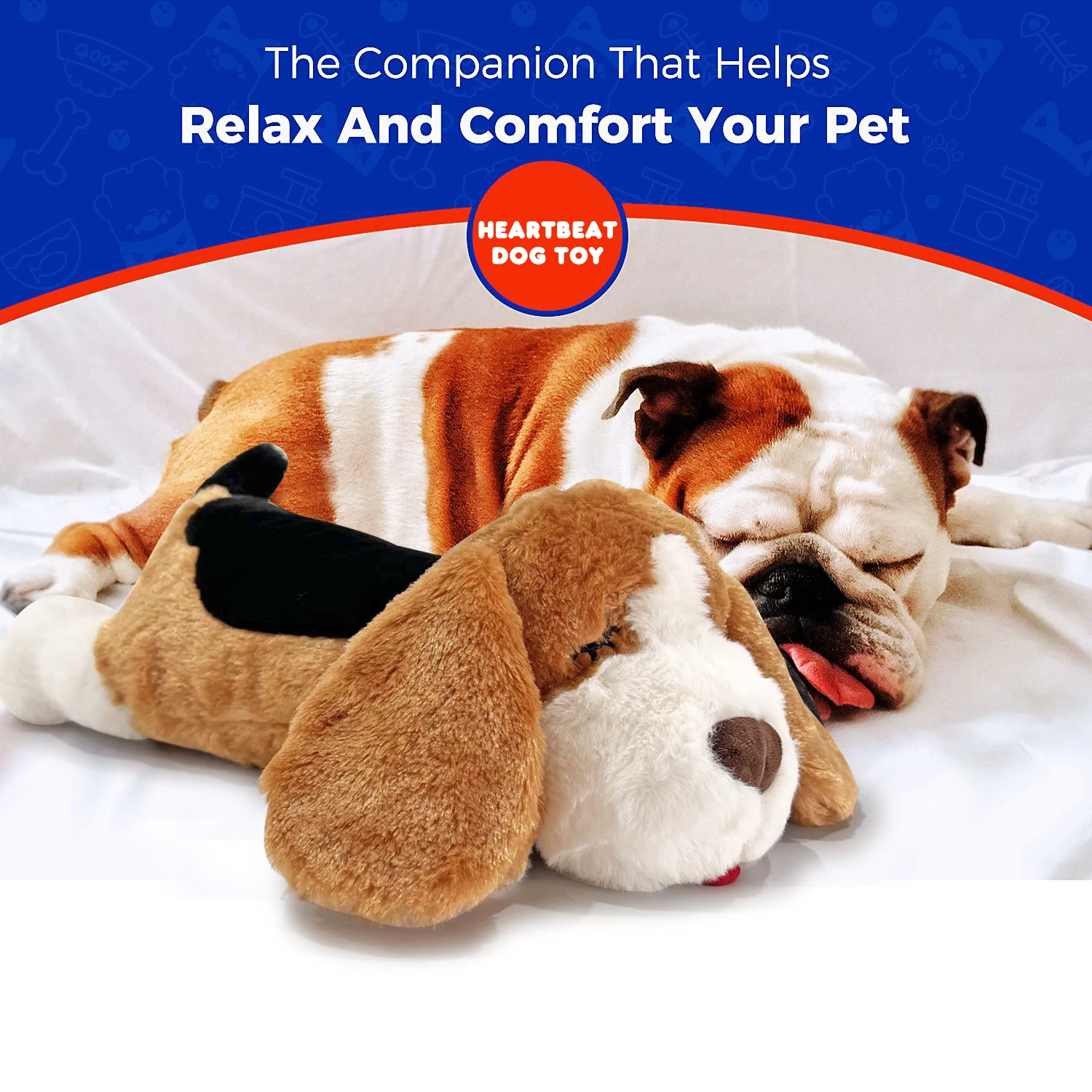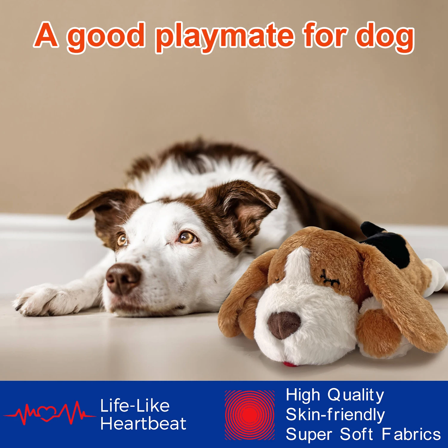 Helps pets transition to new home: The heartbeat toy can help a puppy transition to a new home by providing a source of comfort and familiarization. The rhythmic heartbeat can mimic the sound of a mother dog's heartbeat, which can be calming and reassuring to the puppy.The heartbeat toy can also serve as a familiar object that the puppy can associate with safety and security. The scent of the toy can also help the puppy to recognize and feel more comfortable in its new home.
