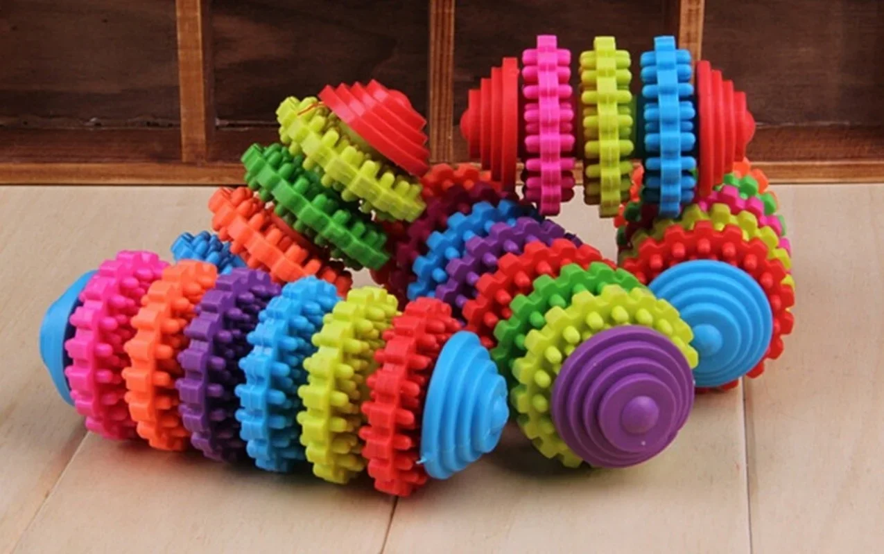 Juguete de Limpieza de dientes de engranaje colorido para mascotas, juguete de TPR para perros, dientes de molienda