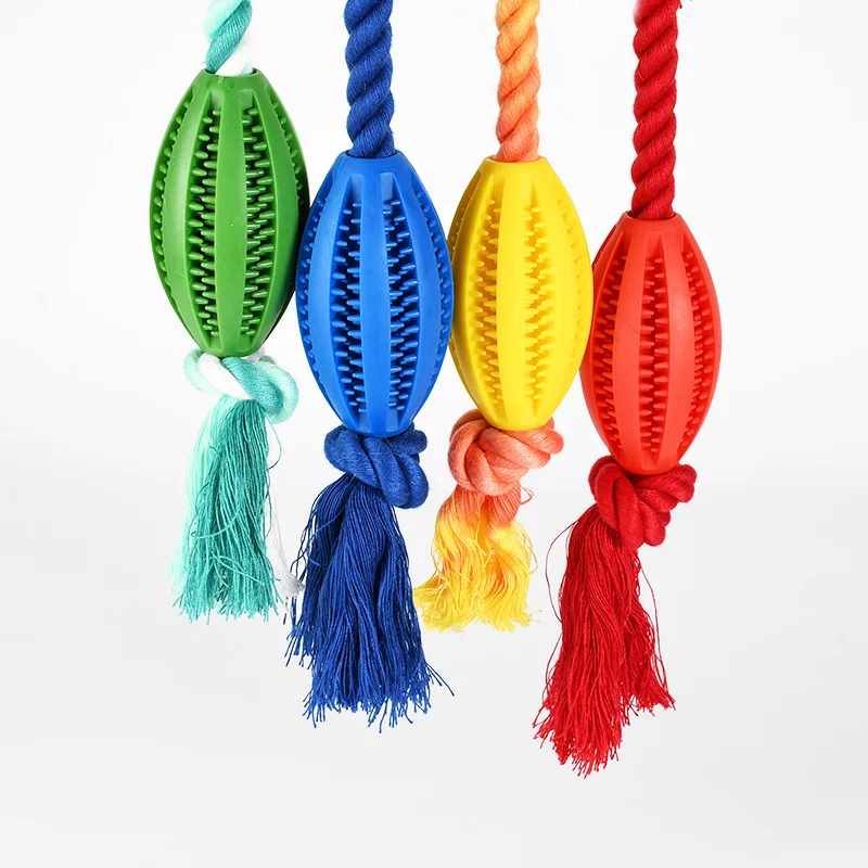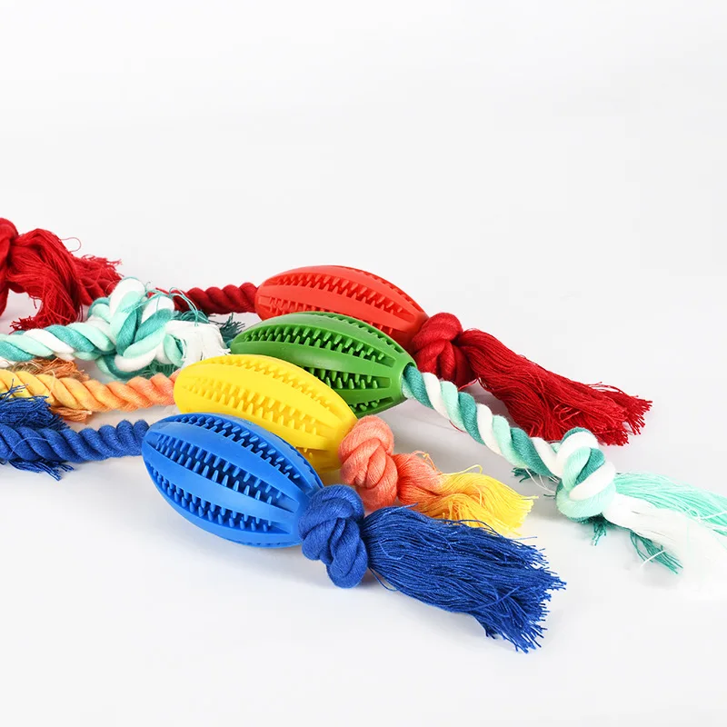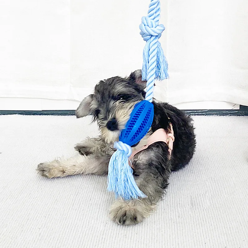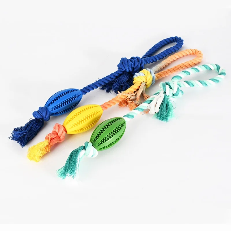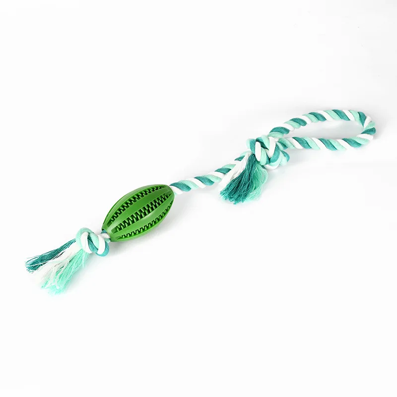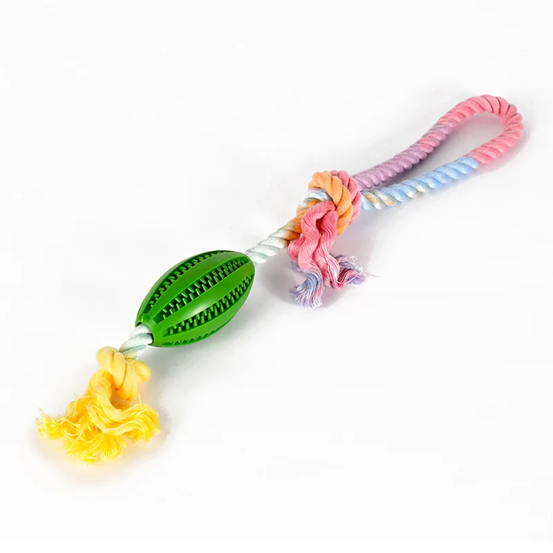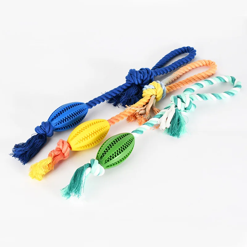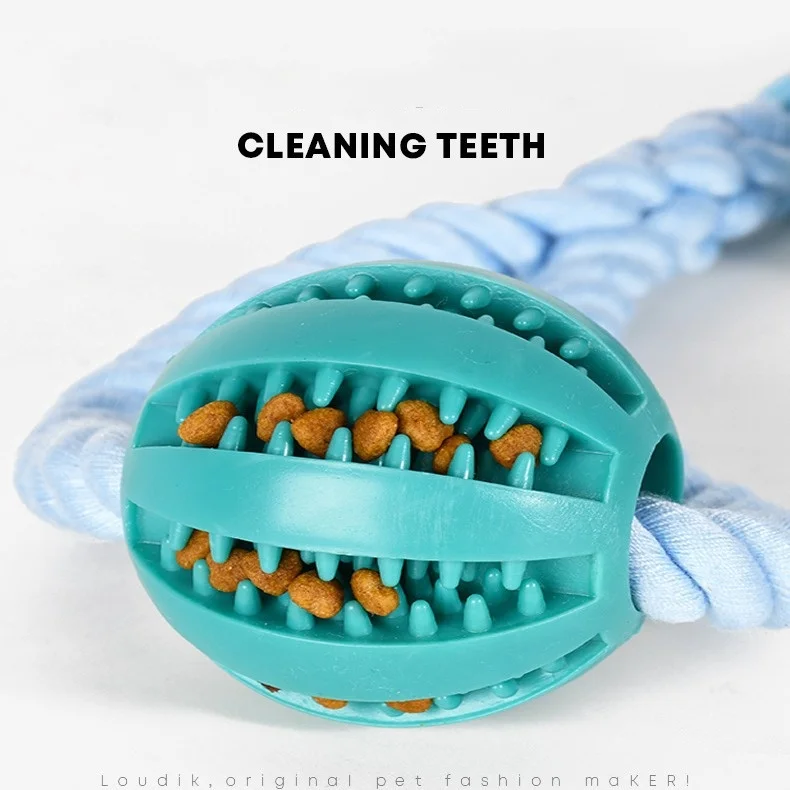 Juguete de Limpieza de dientes para perro, dispensador de comida para mascotas, goma con fugas, cuerda de algodón, bola interactiva para masticar, paquete de 2