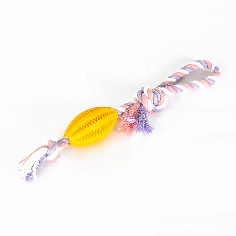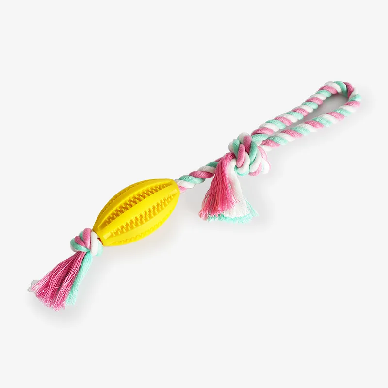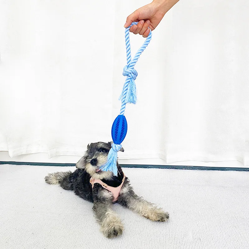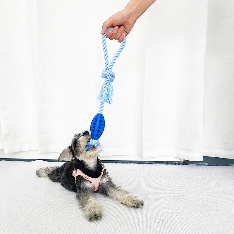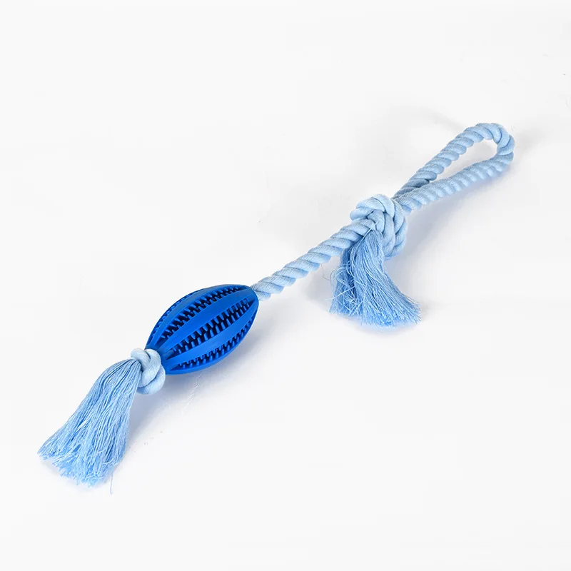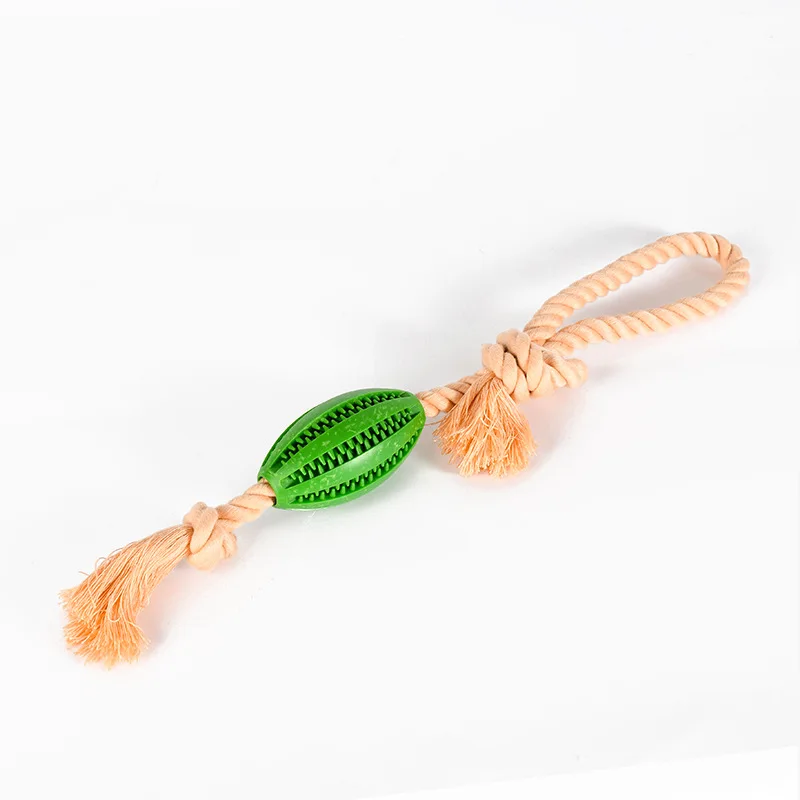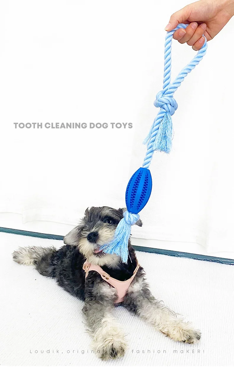 Juguete de Limpieza de dientes para perro, dispensador de comida para mascotas, goma con fugas, cuerda de algodón, bola interactiva para masticar, paquete de 2