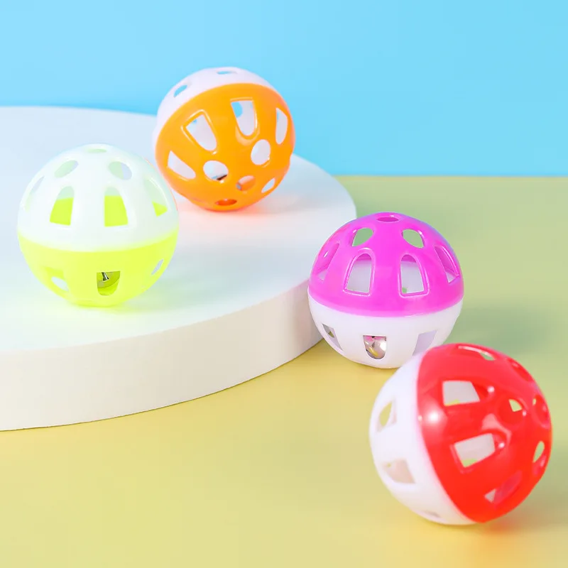 Juguete para loros de 10 piezas, bola rodante hueca de colores aleatorios con campana, jaula para masticar para gatos y mascotas, Juguetes Divertidos para pájaros