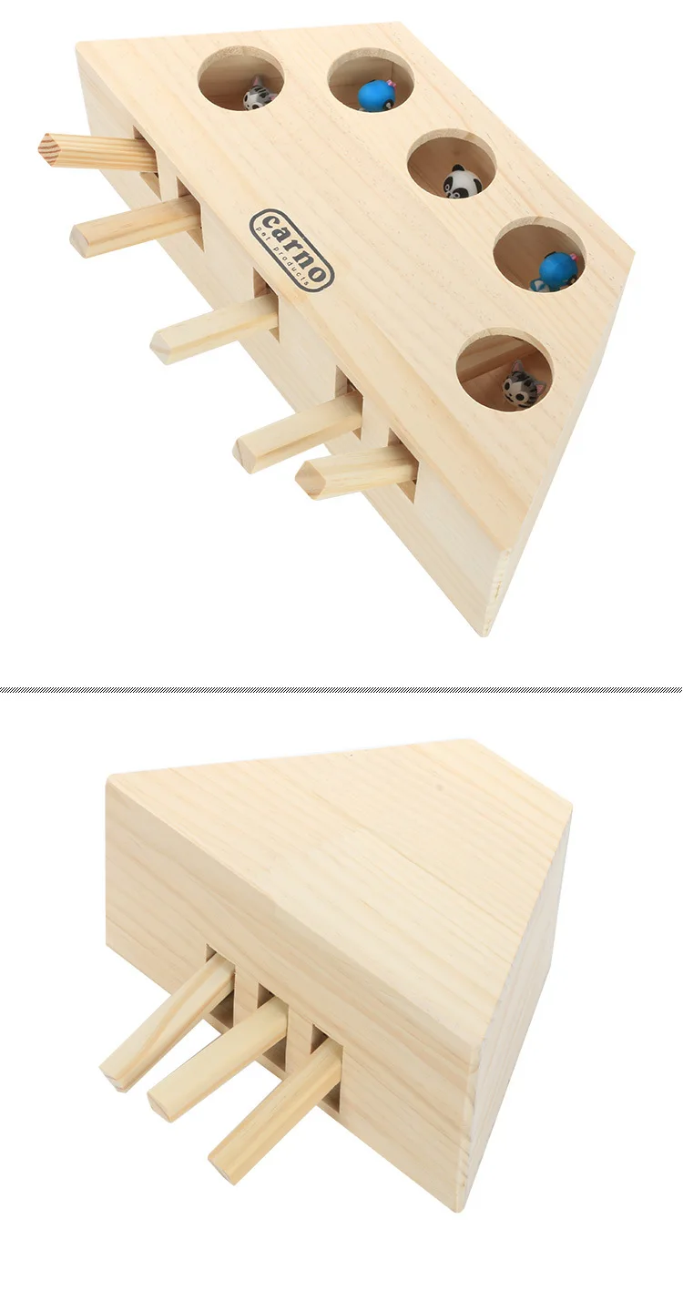 Juguete de madera maciza para gato, laberinto interactivo para mascota, hámster con tres y cinco agujeros, agujero para ratón, trampa para morder, hierba gatera, divertido