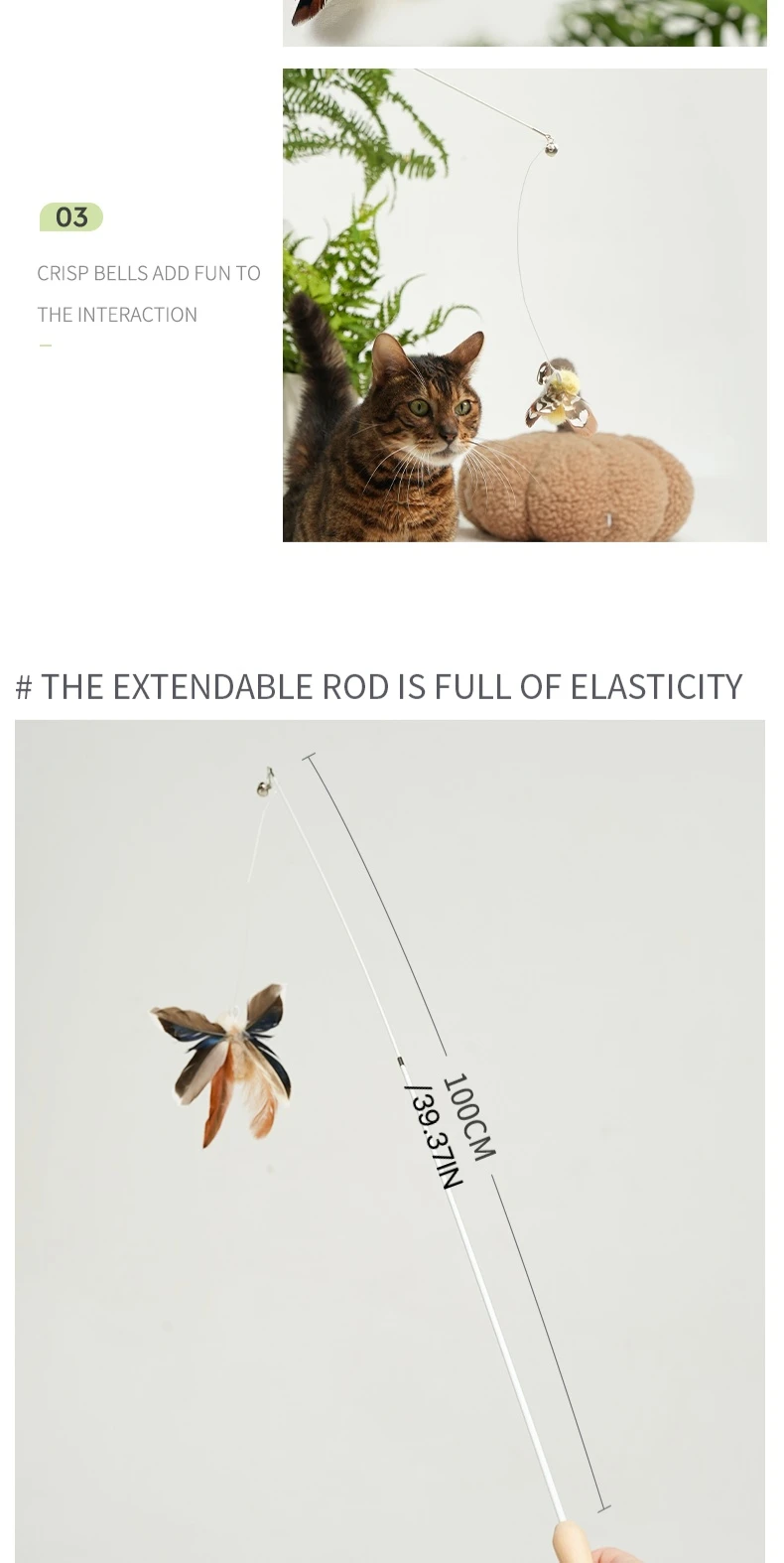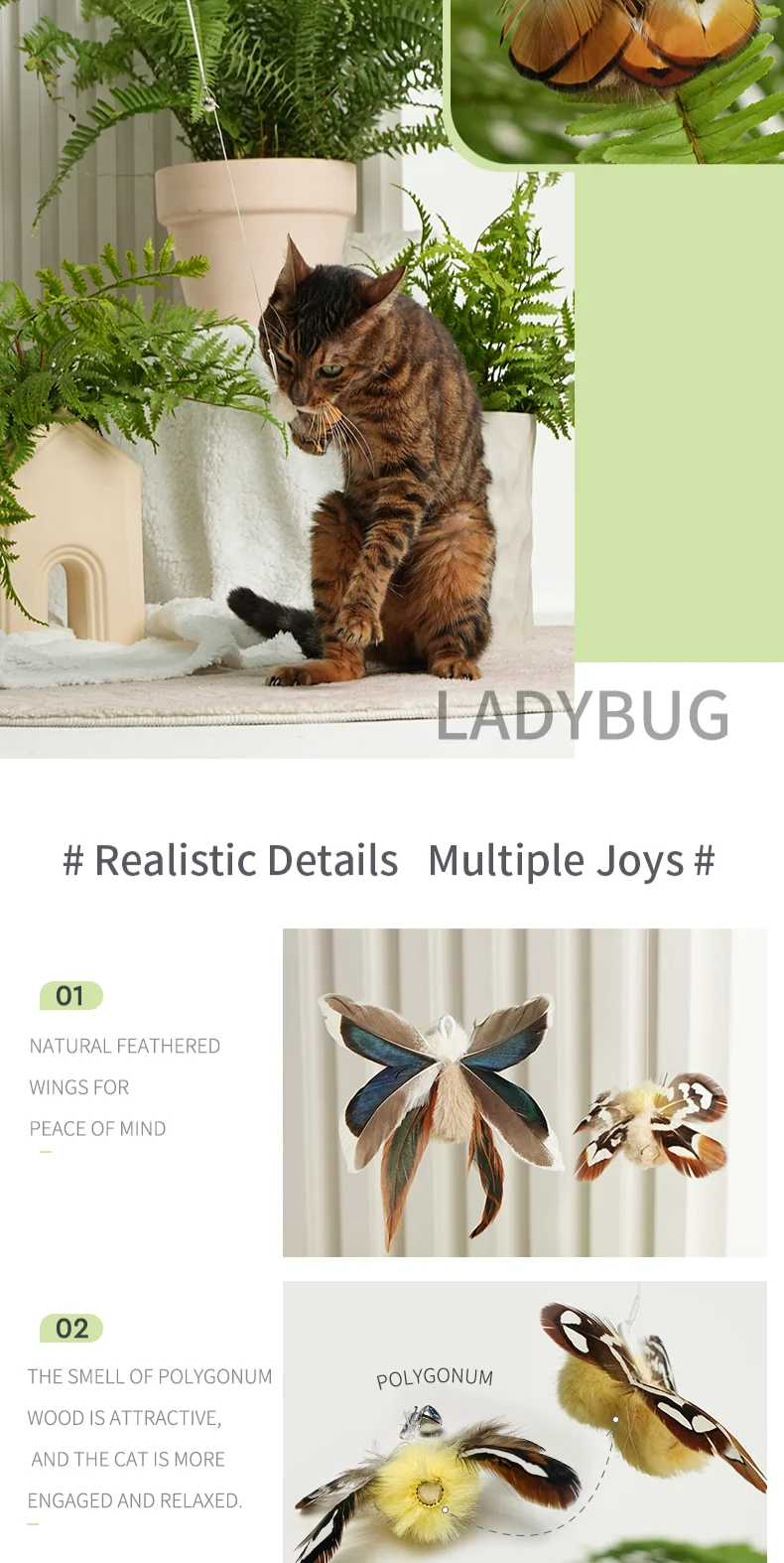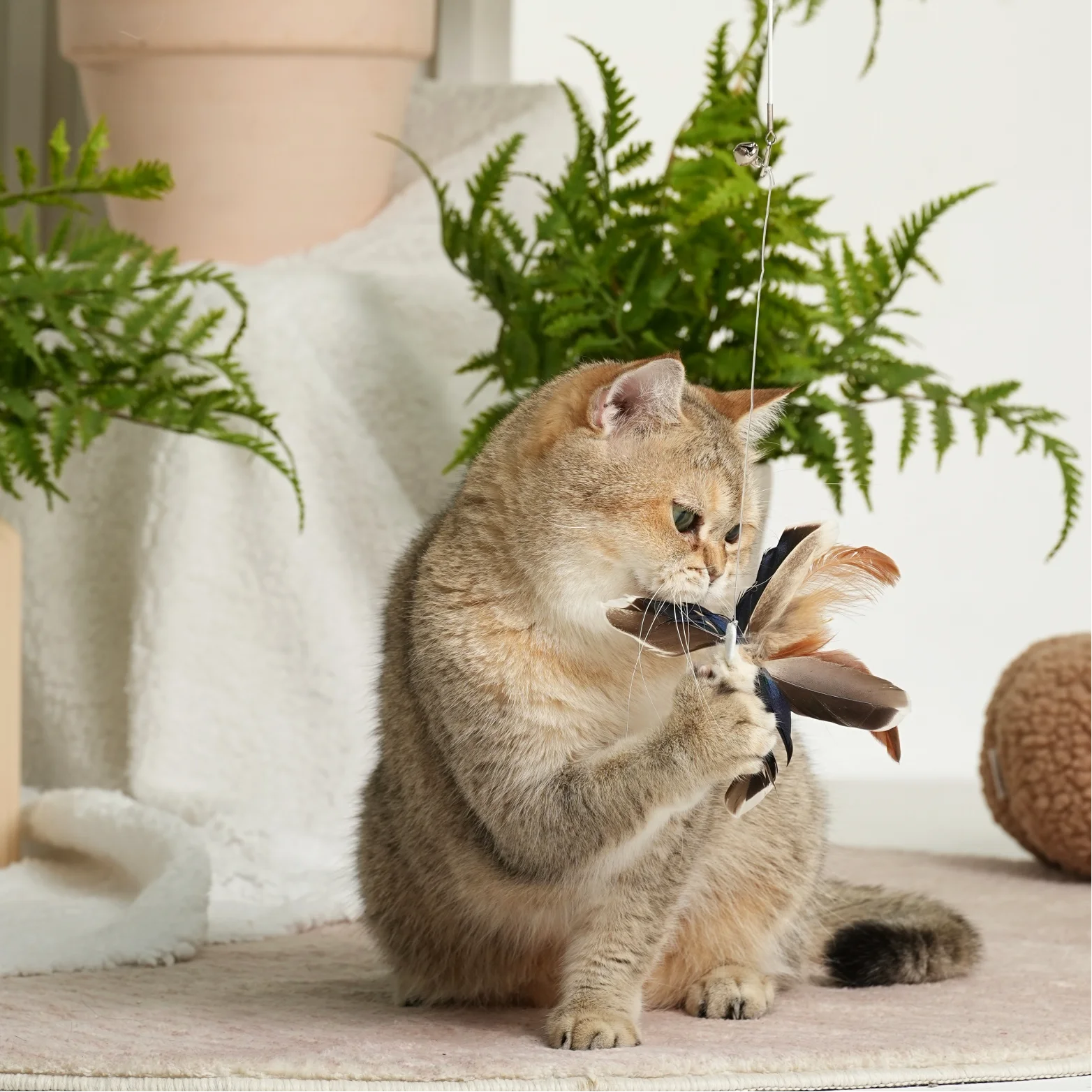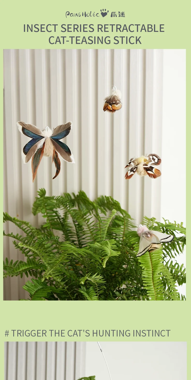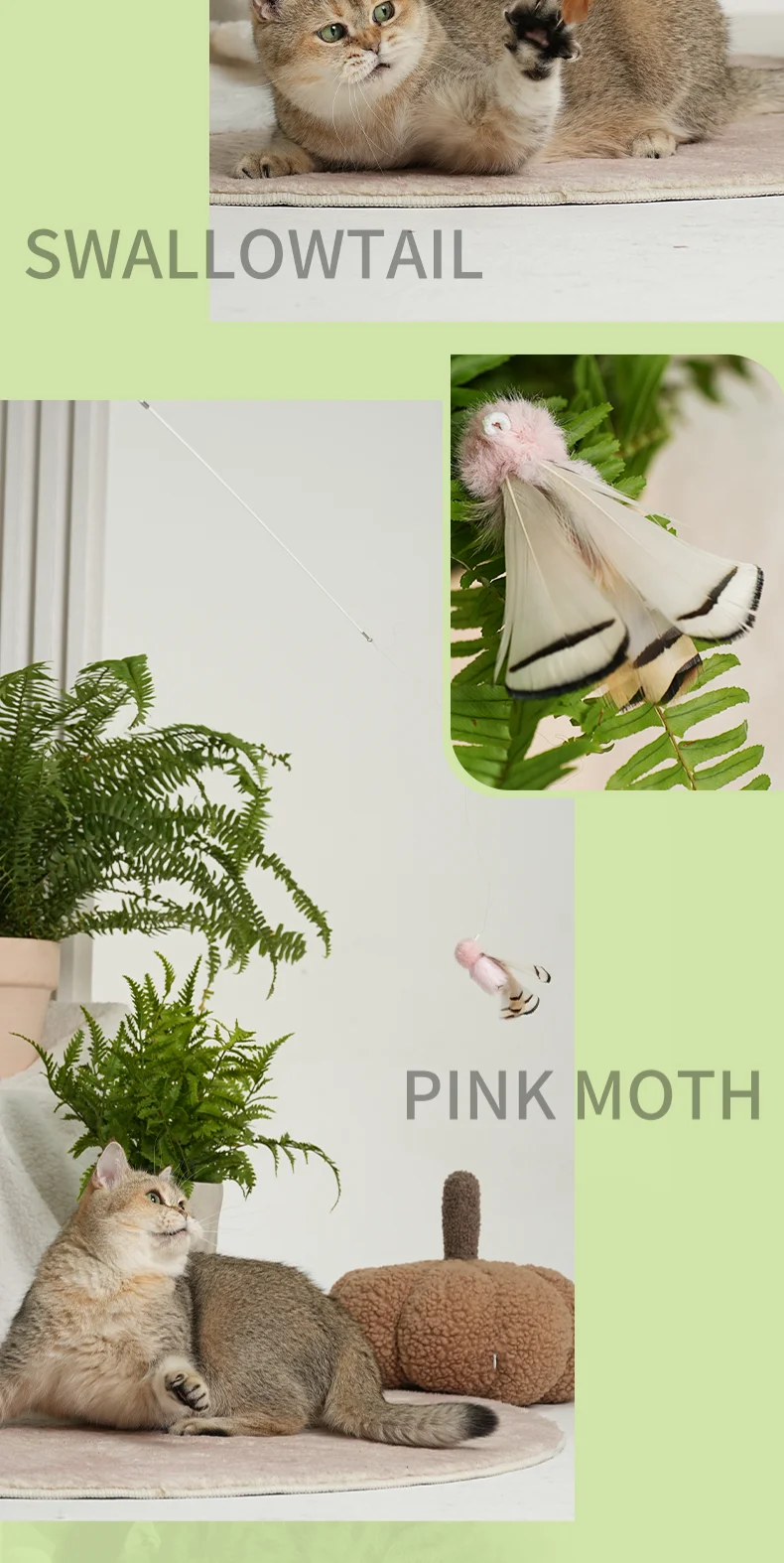 【Natural Feather Attraction】: Engages cats with real feather wings, offering a peaceful and captivating play experience that soothes their mind.