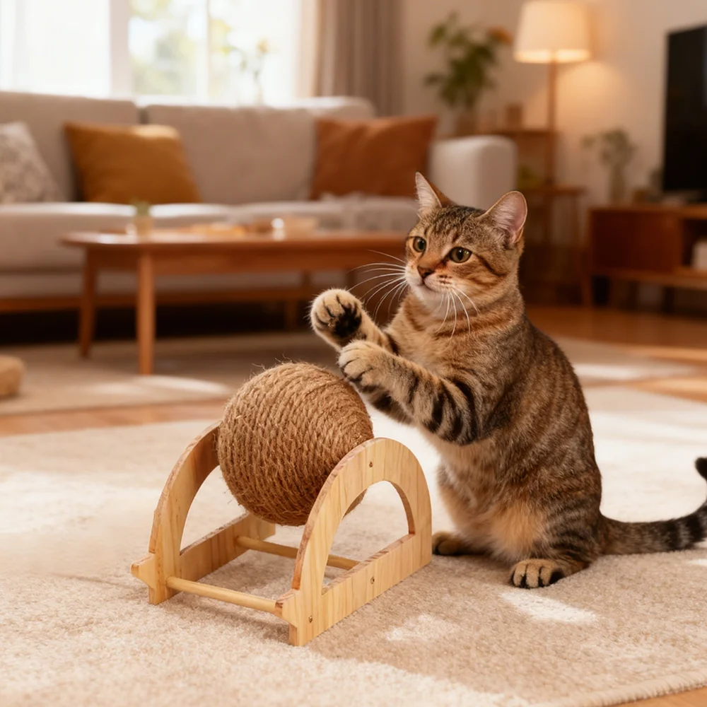 Juguete para mascotas, pelota de sisal para rascar, juguete masticable duradero para entretenimiento y alivio del estrés, artículo de juego para mascotas